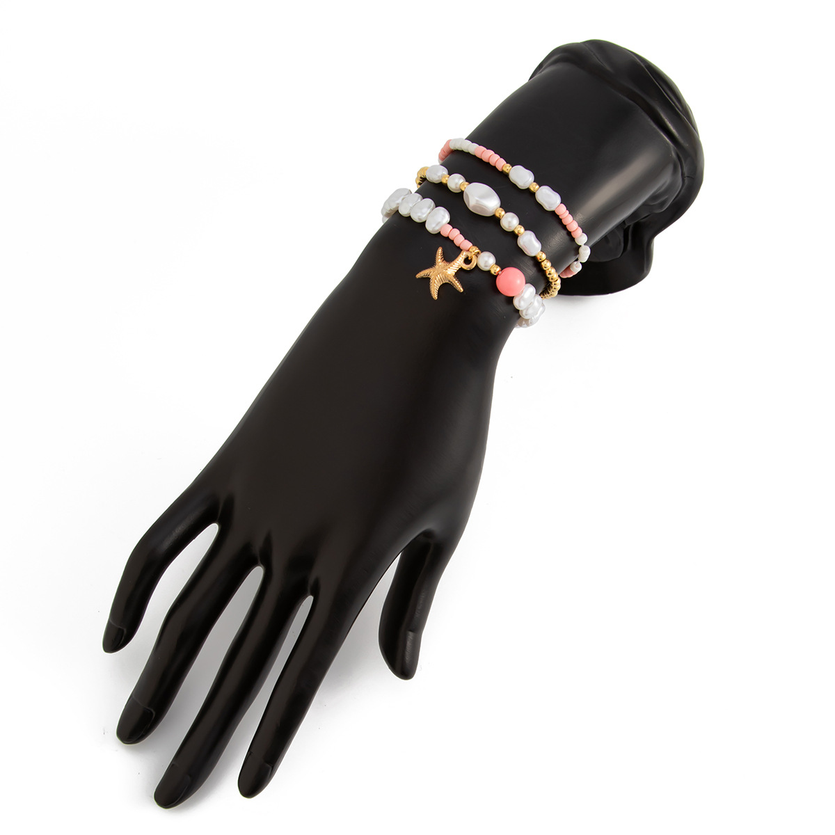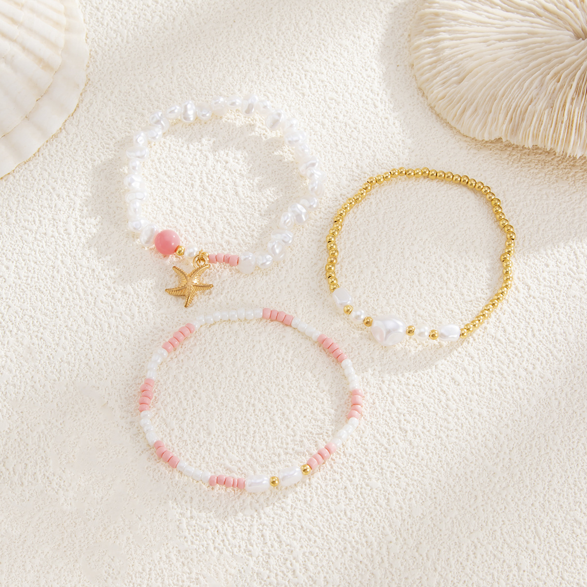 alliage de zinc Set de bracelet, avec Seedbead & fil élastique & plastique revêtu de cuivre & perle de plastique, fait à la main, trois pièces & styles différents pour le choix & pour femme, couleurs mélangées, Vendu par fixé