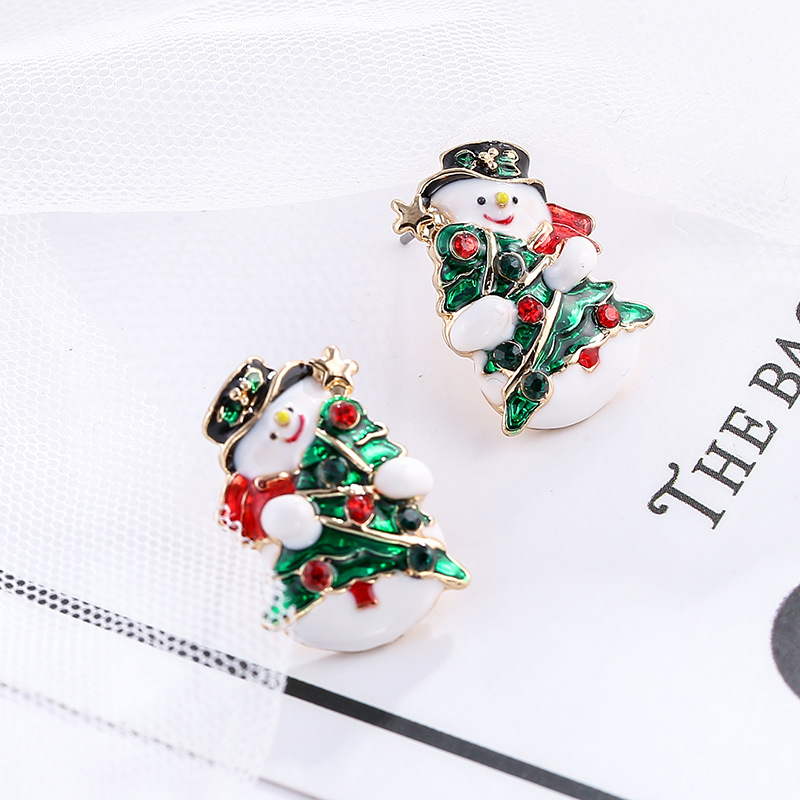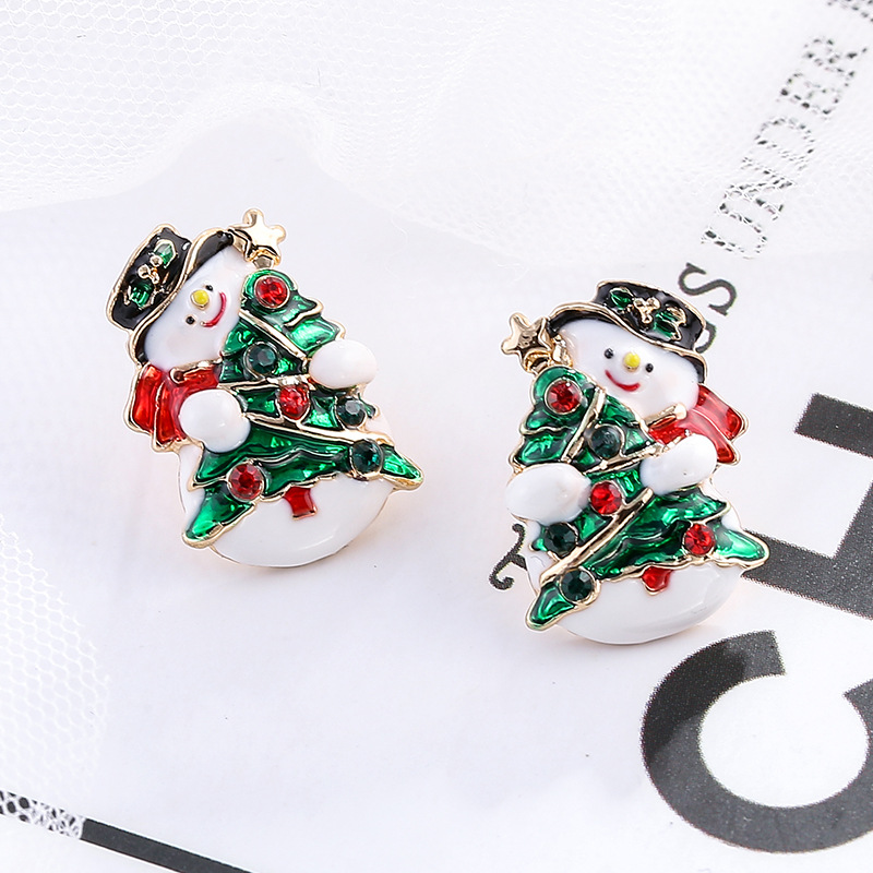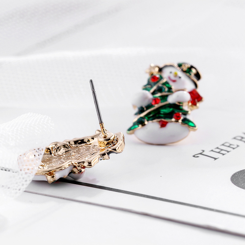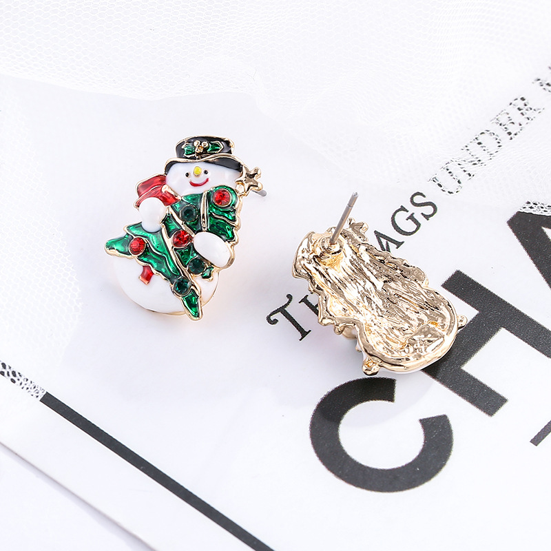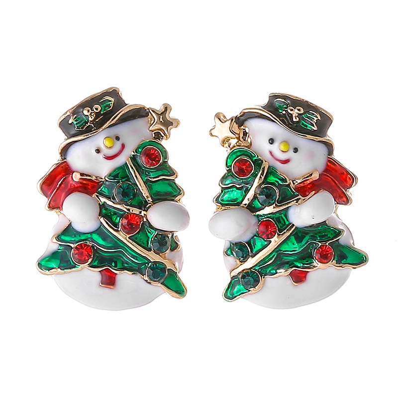 alliage de zinc boucle d oreille dormeuse, bonhomme de neige, Placage de couleur d'or, pour femme & émail & avec strass, earring length 25-40mm, Vendu par paire