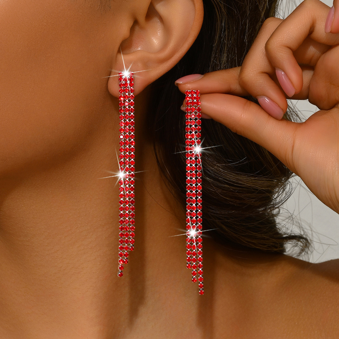 alliage de zinc boucle d'oreille en gland, Placage, bijoux de mode & pour femme & avec strass, plus de couleurs à choisir, 7x95mm, Vendu par paire