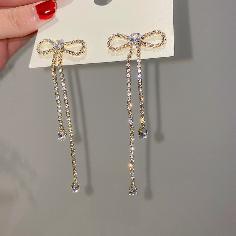 alliage de zinc boucle d'oreille en gland, Noeud papillon, Placage, pour femme & avec strass, plus de couleurs à choisir, 40x100mm, Vendu par paire