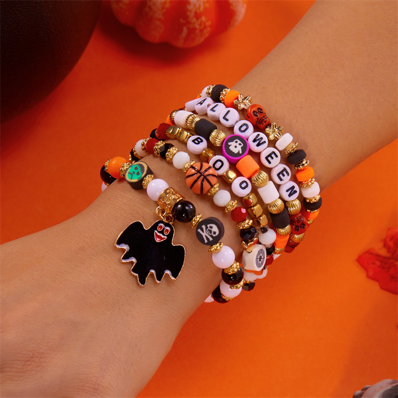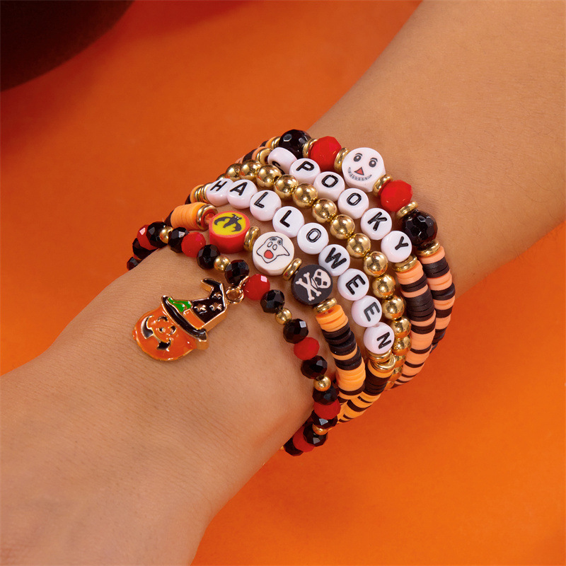 alliage de zinc bracelet, avec argile de polymère, Placage de couleur d'or, Halloween Design & émail, plus de couleurs à choisir, Vendu par fixé