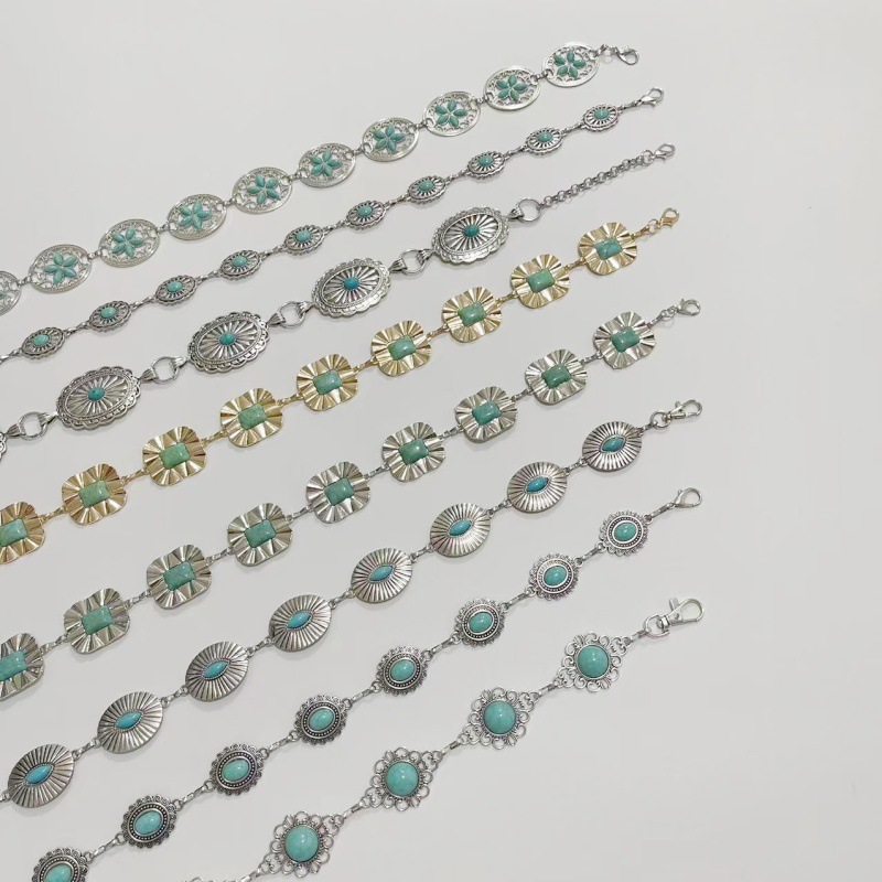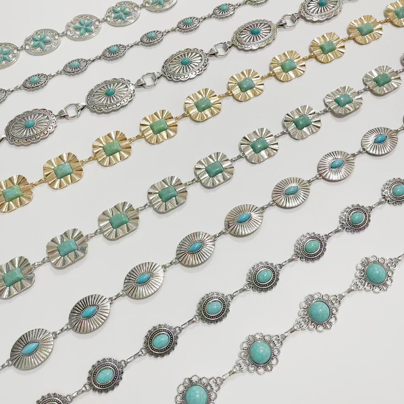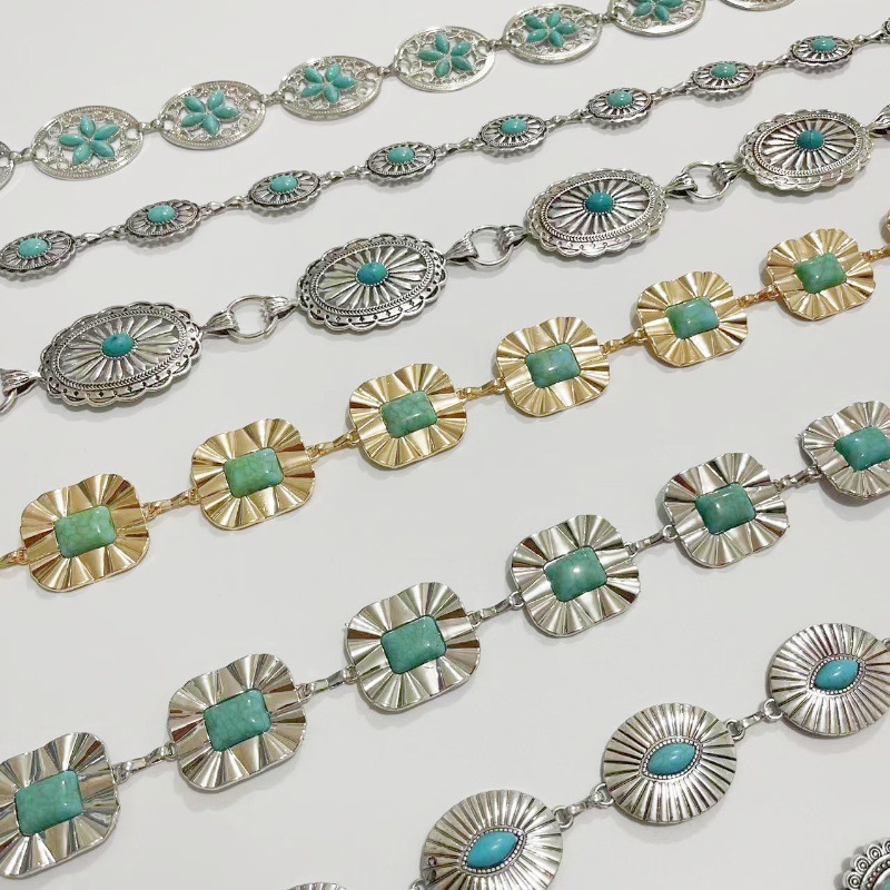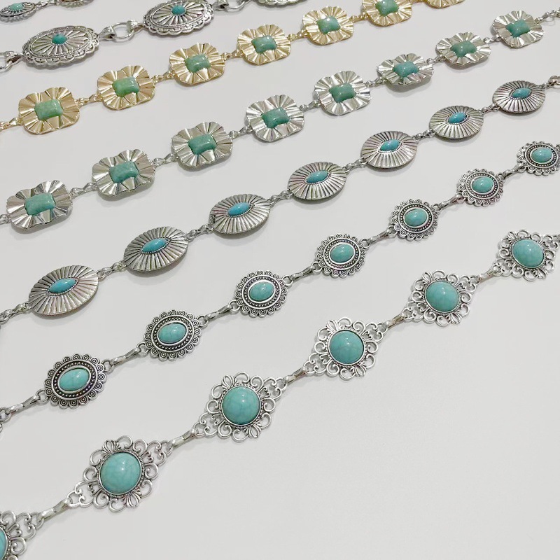 alliage de zinc chaîne de taille, avec turquoise synthétique, Placage, styles différents pour le choix & pour femme, Longueur:Environ 105-120 cm, Vendu par PC