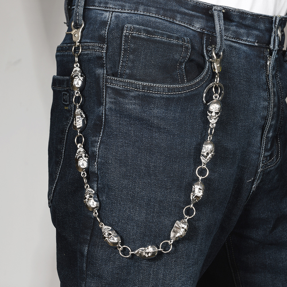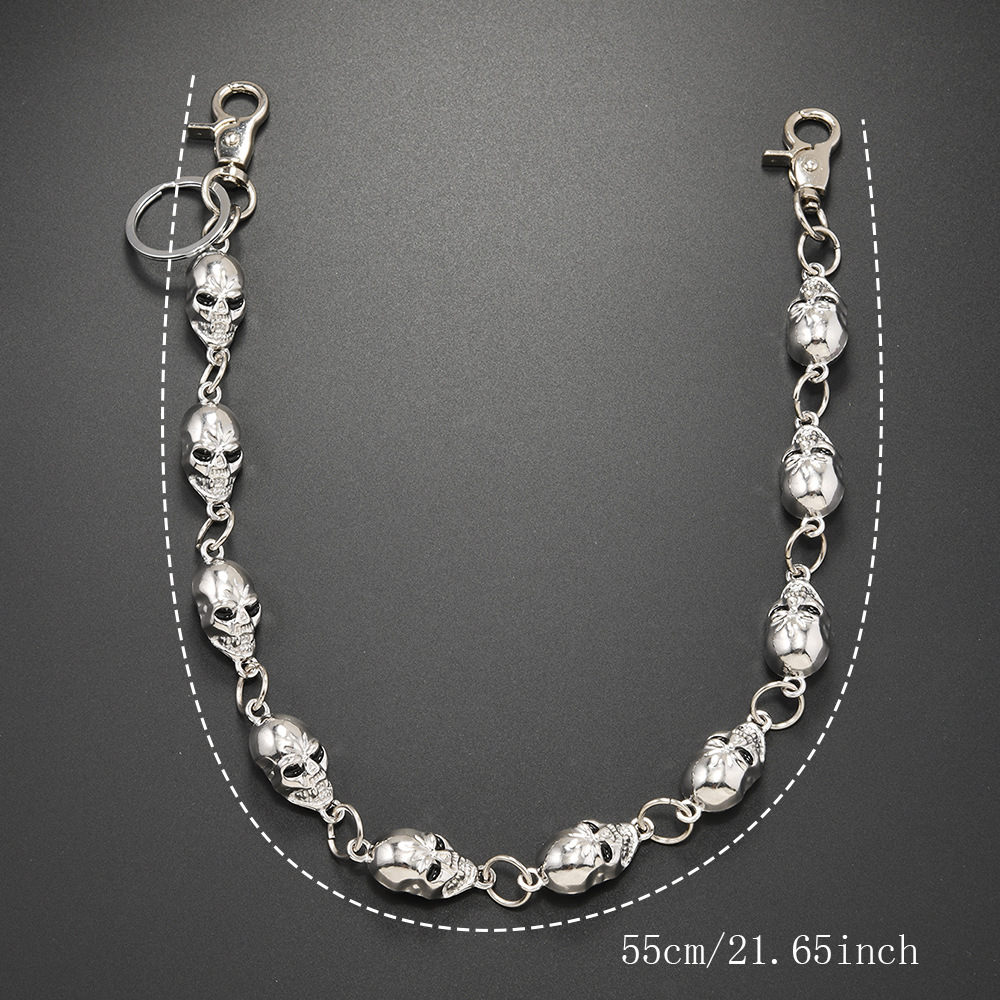 alliage de zinc chaîne de taille, avec fer, crane, Placage, Halloween Design & le style de punk & unisexe, argent, Longueur:Environ 55 cm, Vendu par PC
