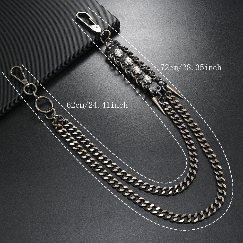 alliage de zinc chaîne de taille, avec cuir de peau de vache & fer, Placage, Double couche & le style de punk & unisexe, plus de couleurs à choisir, Vendu par PC