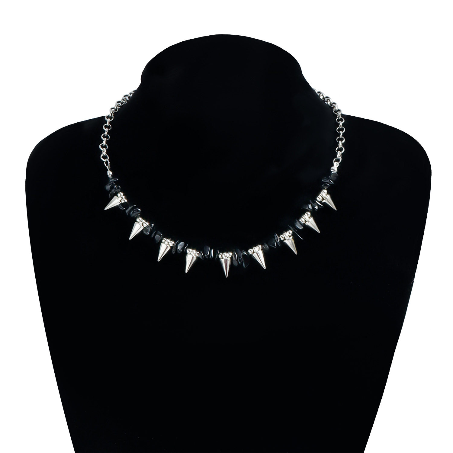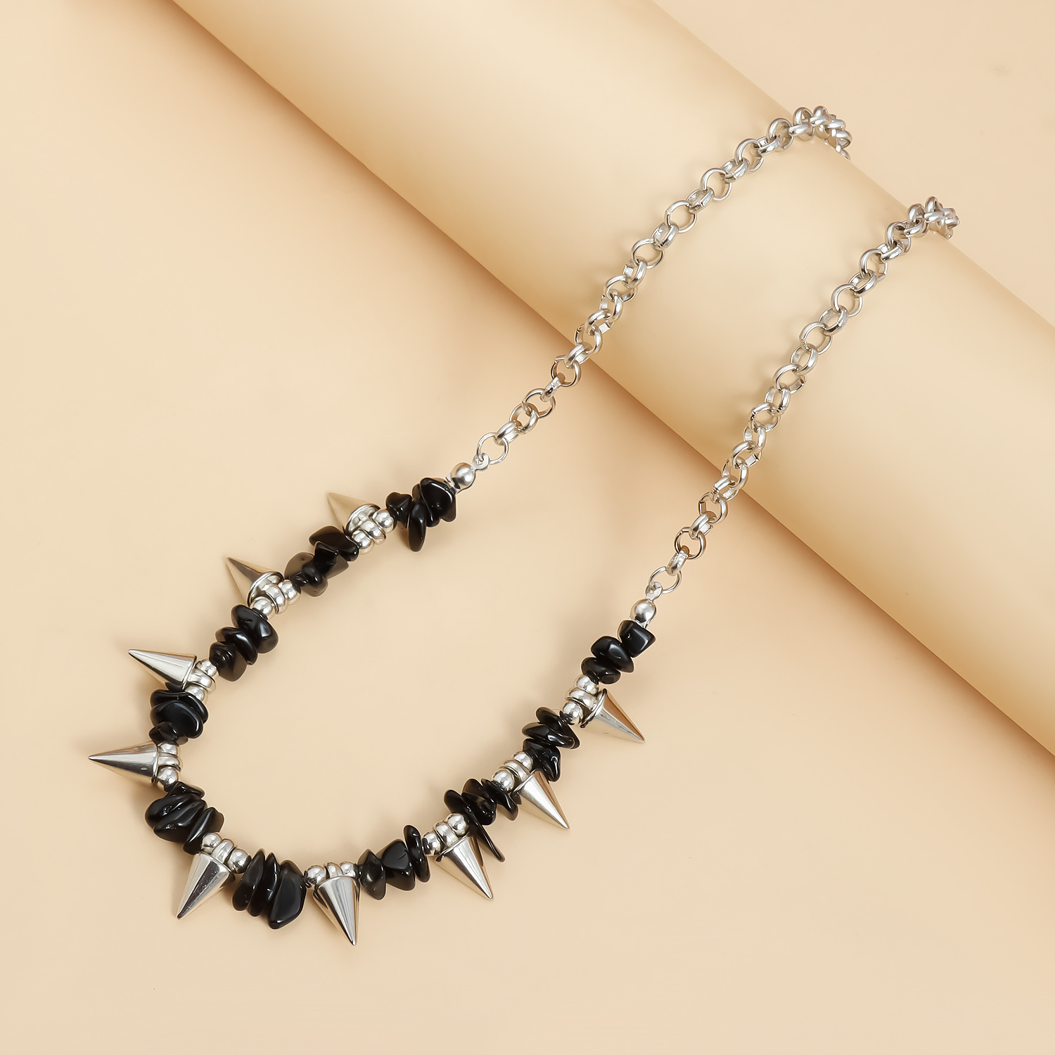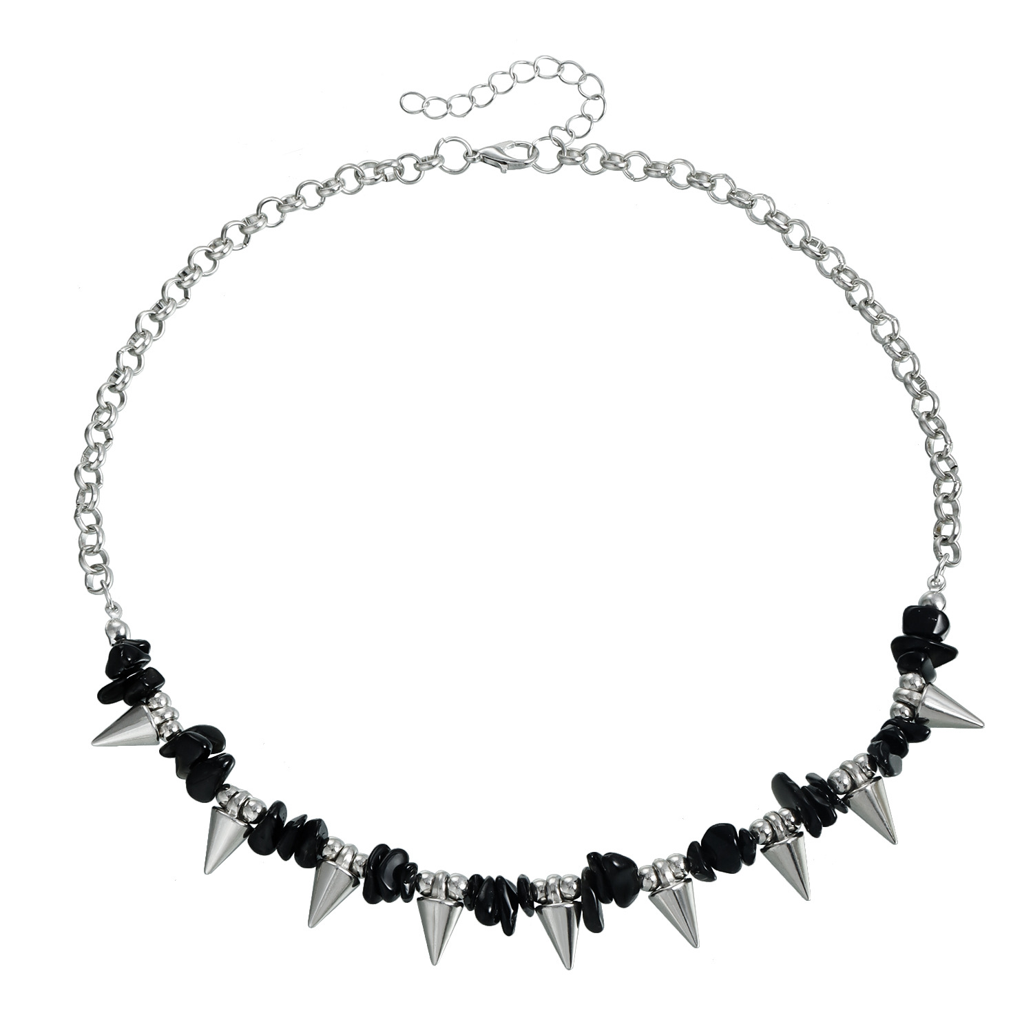 alliage de zinc collier, avec pierre noire, Placage, bijoux de mode & pour femme, couleur originale, Vendu par PC