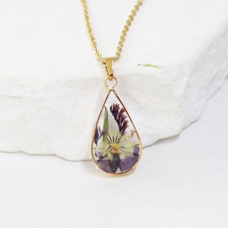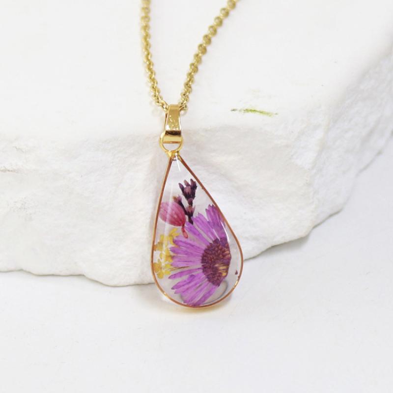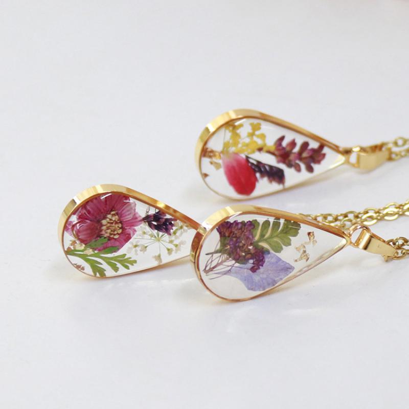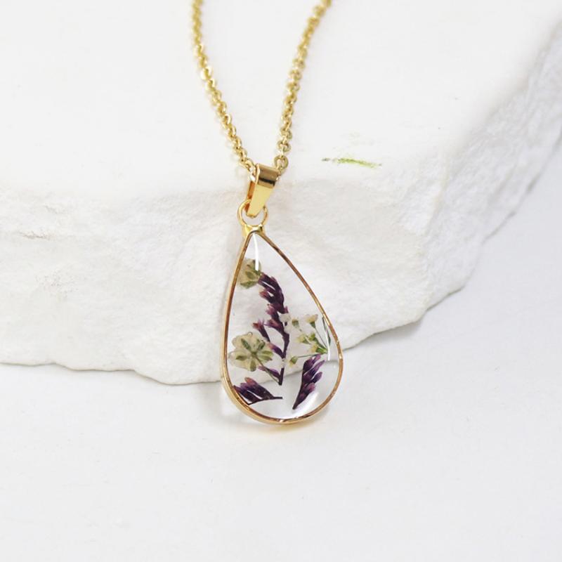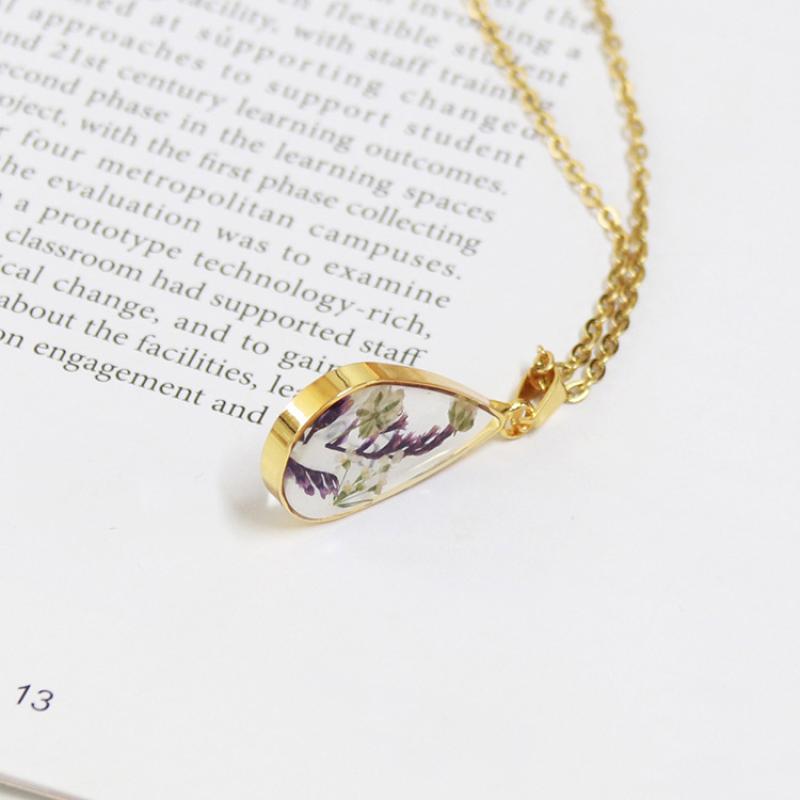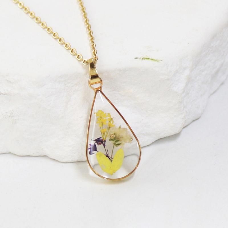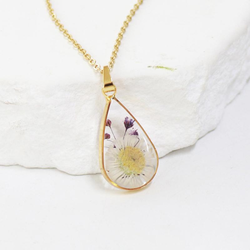 alliage de zinc collier, avec 304 chaîne en acier inoxydable & Fleurs séchées & résine, goutté d'époxy, bijoux de mode & modèles différents pour le choix & pour femme, doré, Longueur:Environ 45 cm, 6PC/sac, Vendu par sac
