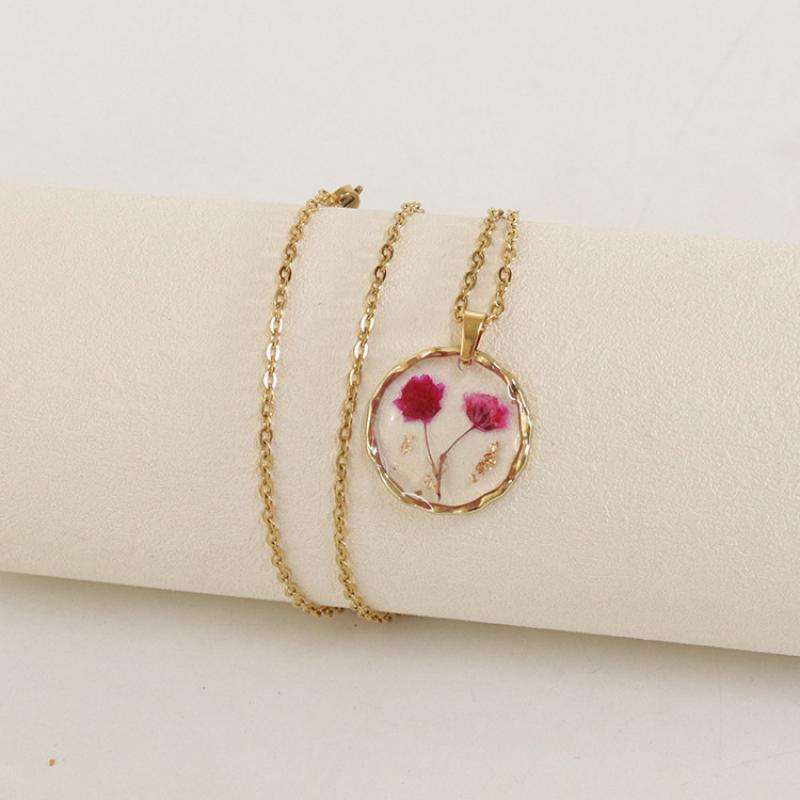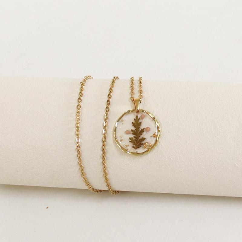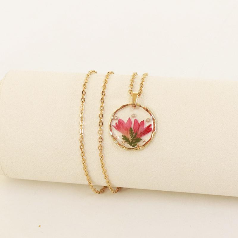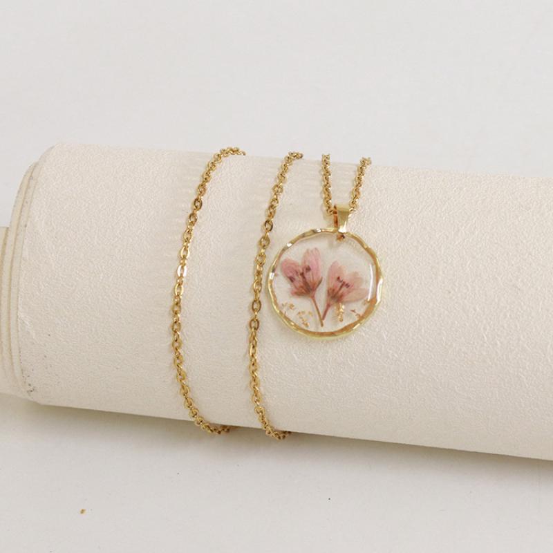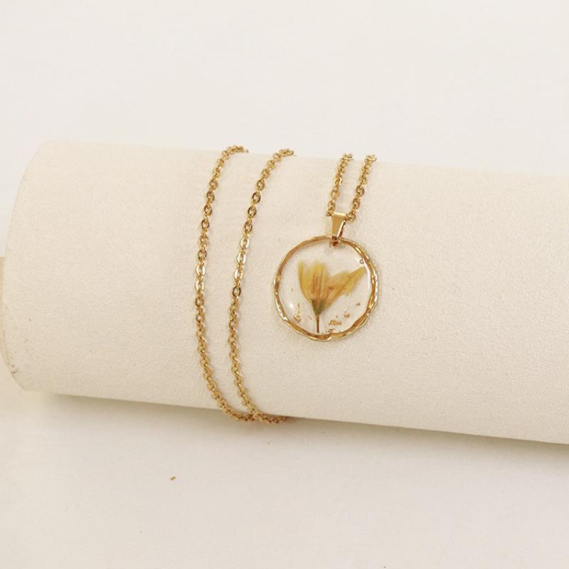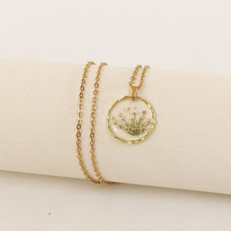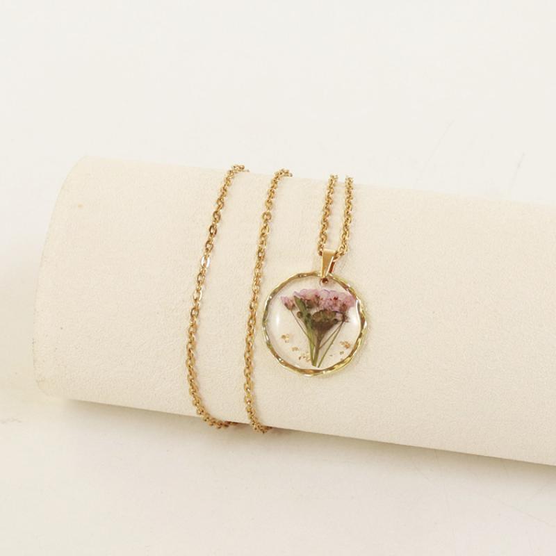 alliage de zinc collier, avec 304 chaîne en acier inoxydable & Fleurs séchées & résine, modèles différents pour le choix & pour femme & autocollant époxyde, doré, Longueur:Environ 45 cm, 6PC/sac, Vendu par sac