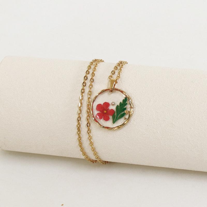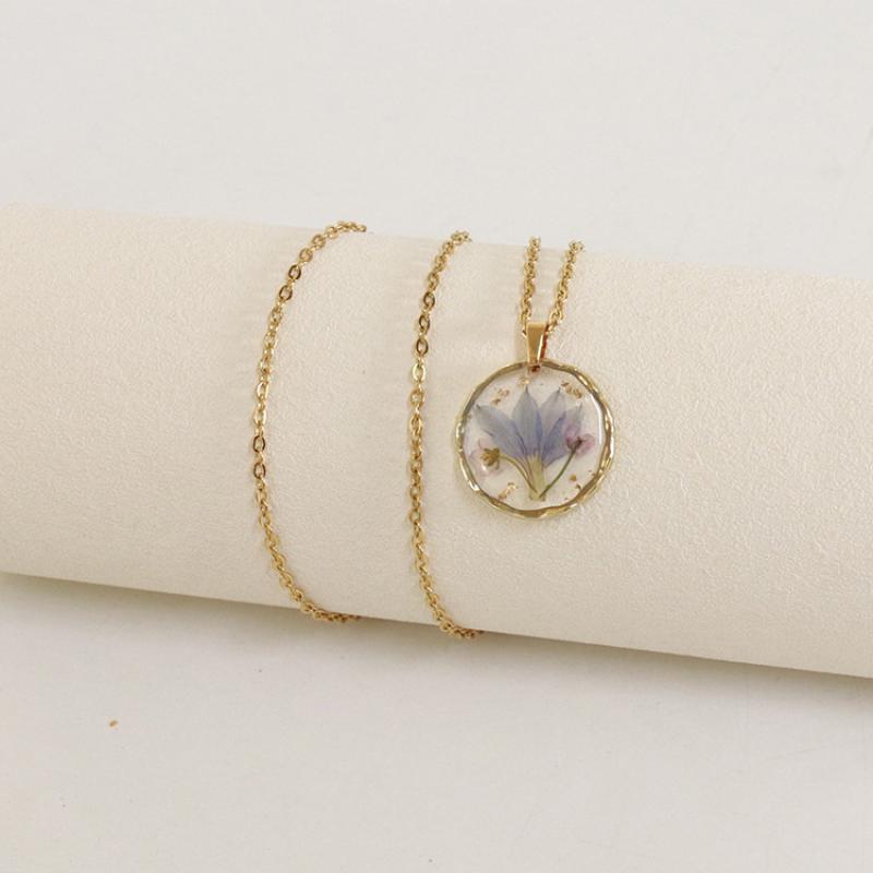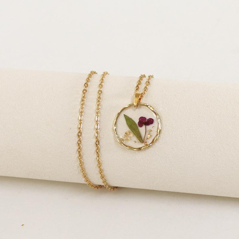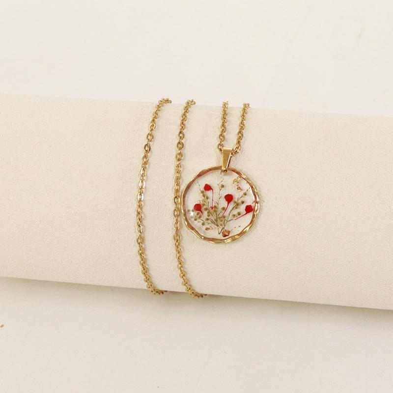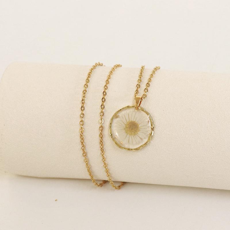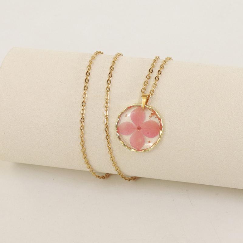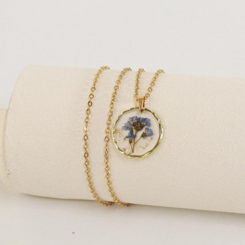 alliage de zinc collier, avec 304 chaîne en acier inoxydable & Fleurs séchées & résine, modèles différents pour le choix & pour femme & autocollant époxyde, doré, Longueur:Environ 45 cm, 6PC/sac, Vendu par sac