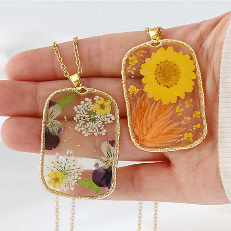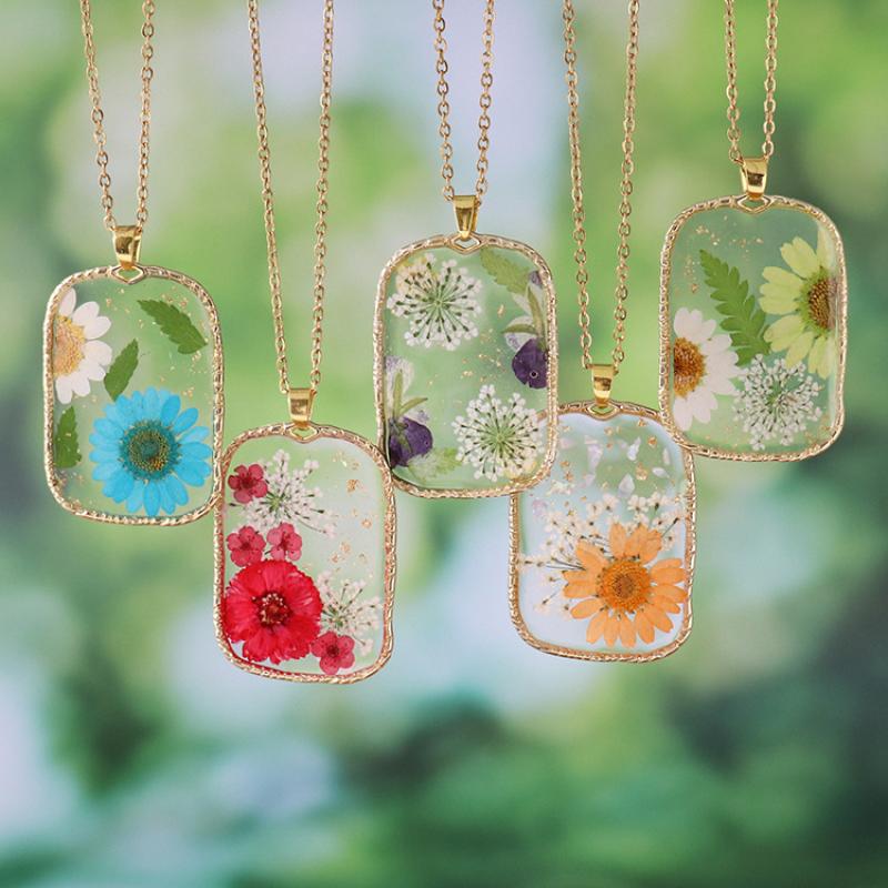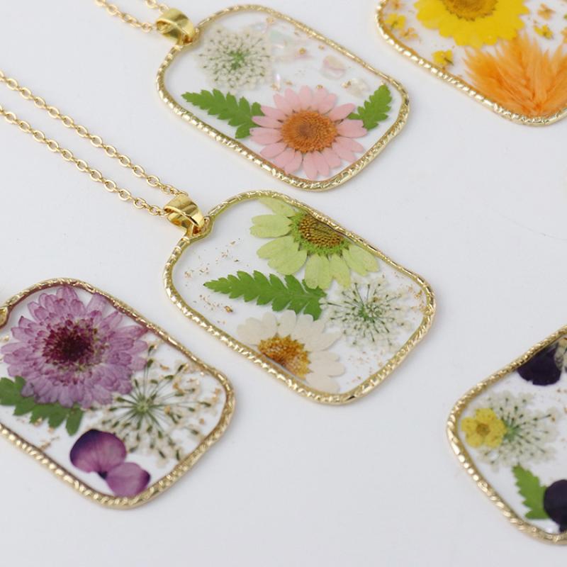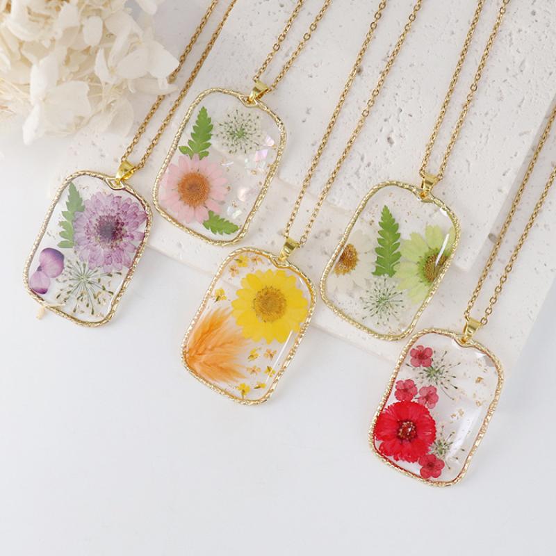 alliage de zinc collier, avec 304 chaîne en acier inoxydable & Fleurs séchées & résine, fait à la main, modèles différents pour le choix & pour femme & autocollant époxyde, doré, Longueur:Environ 45 cm, 6PC/sac, Vendu par sac