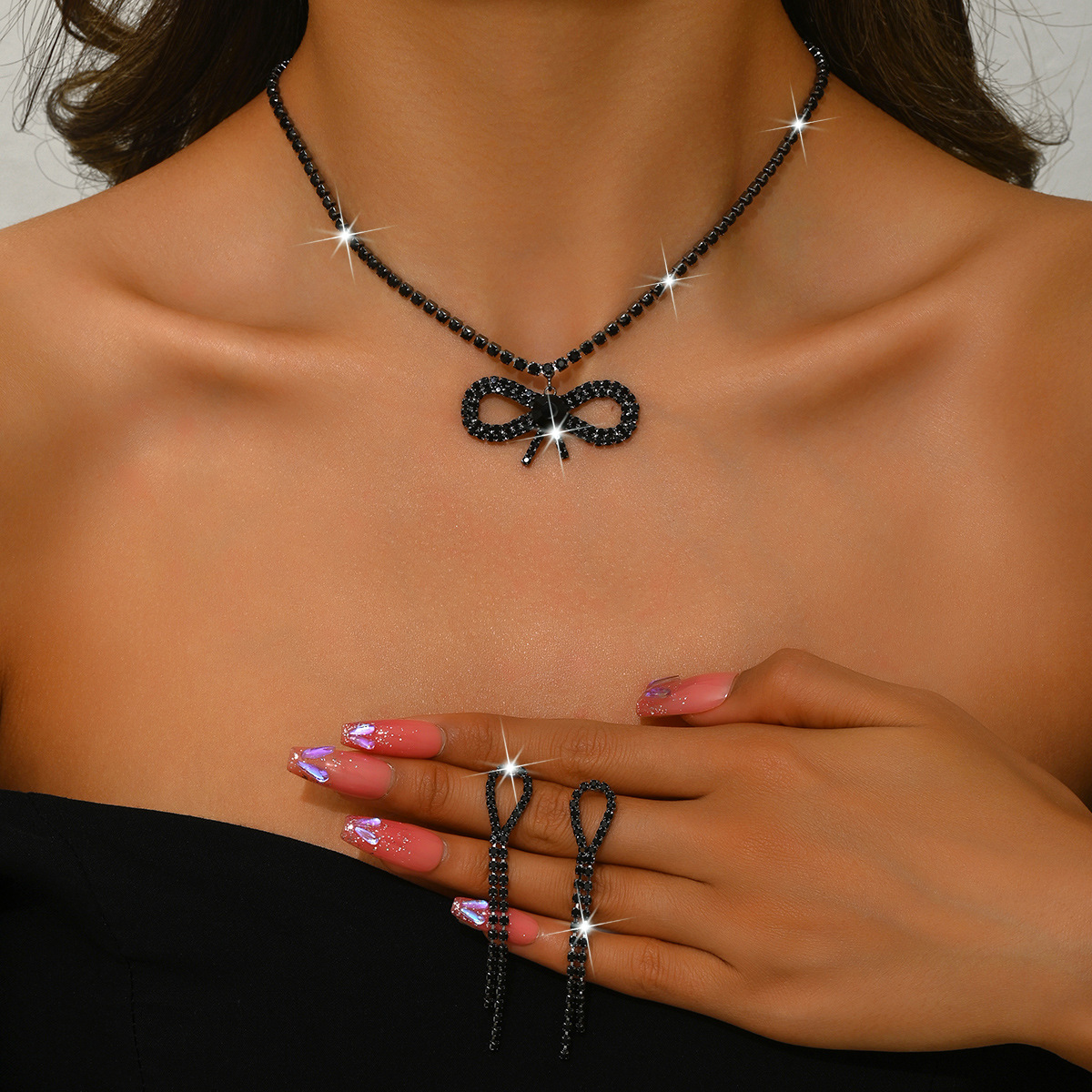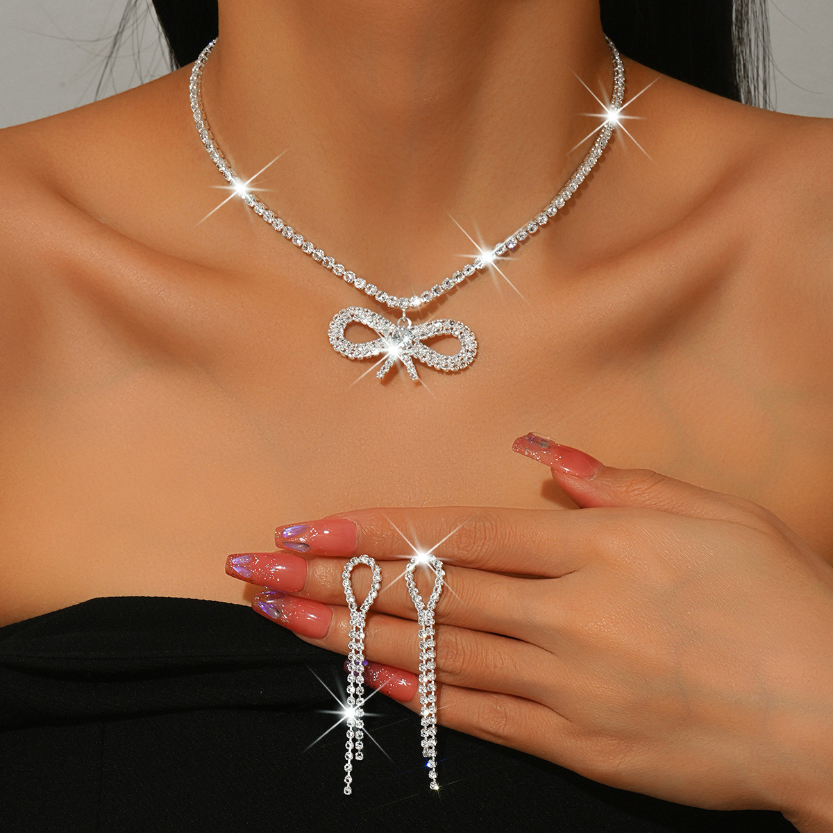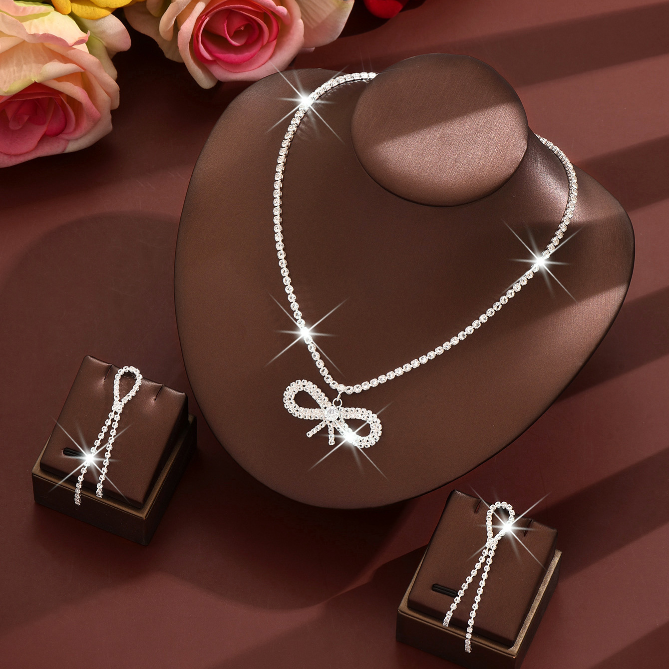 alliage de zinc parure de bijoux, boucle d'oreille & collier, Noeud papillon, Placage, 2 pièces & pour femme & avec strass, plus de couleurs à choisir, Vendu par fixé