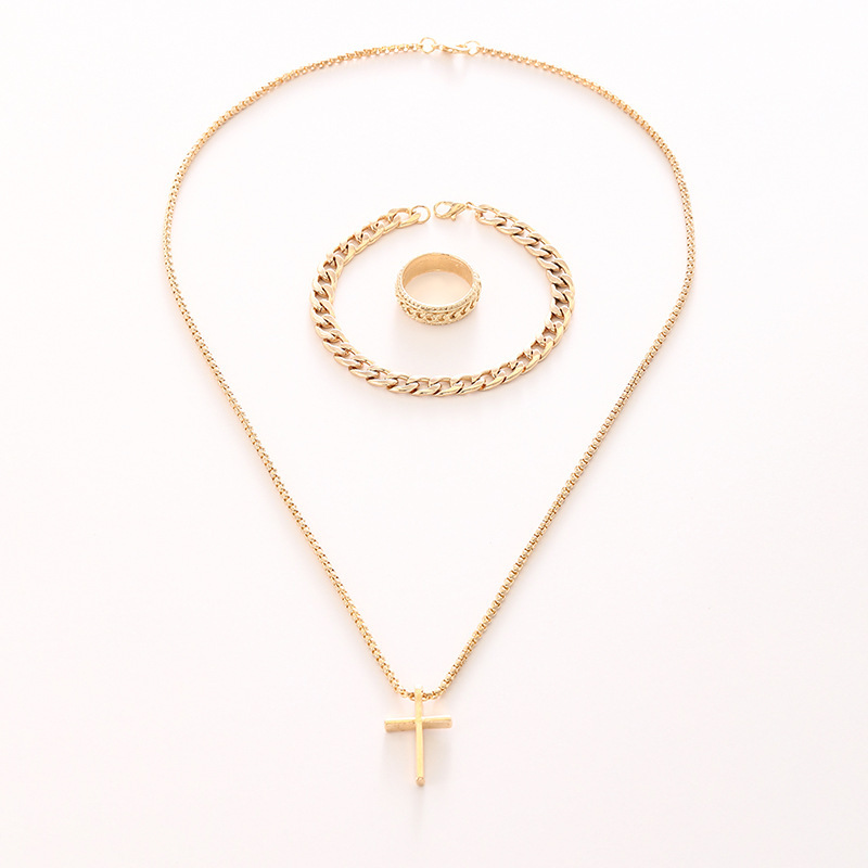 alliage de zinc parure de bijoux, bague, anneau & Bracelet & collier, Placage, trois pièces & pour femme, plus de couleurs à choisir, necklace length 19.7-23.6inch, bracelet length 6-8inch, Taille:7, Vendu par fixé