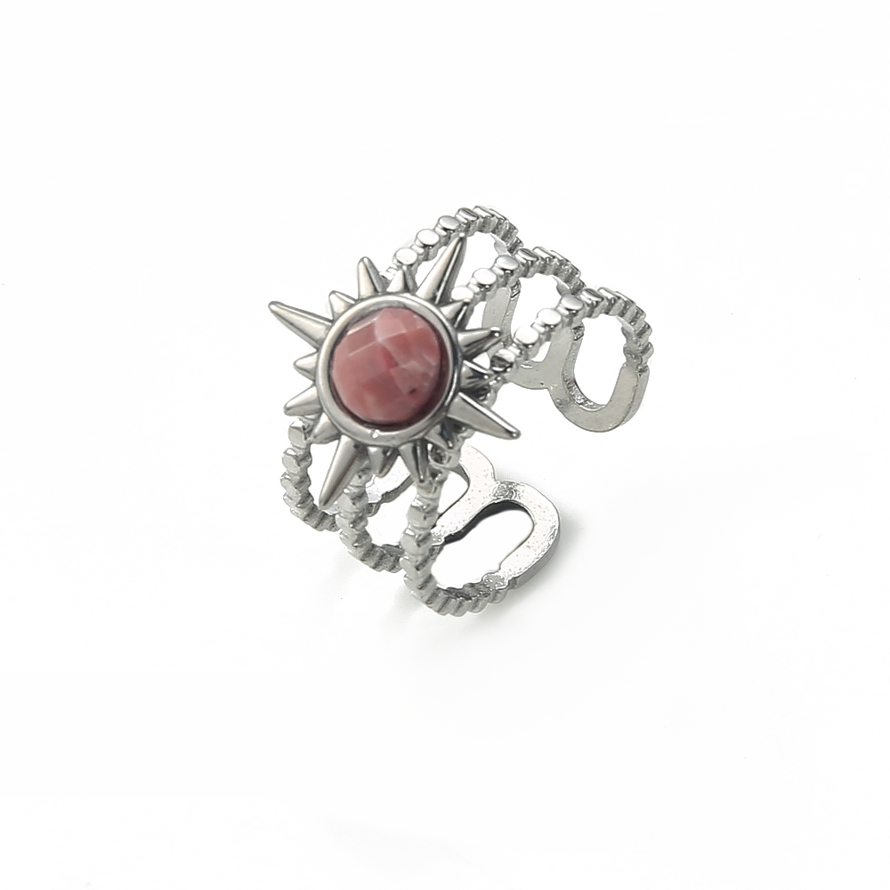 bague en alliage Zinc à Pierre précieuse , alliage de zinc, avec grenat, Plaqué de couleur d'argent, unisexe, sans plomb et cadmium .5 îte, Vendu par boîte