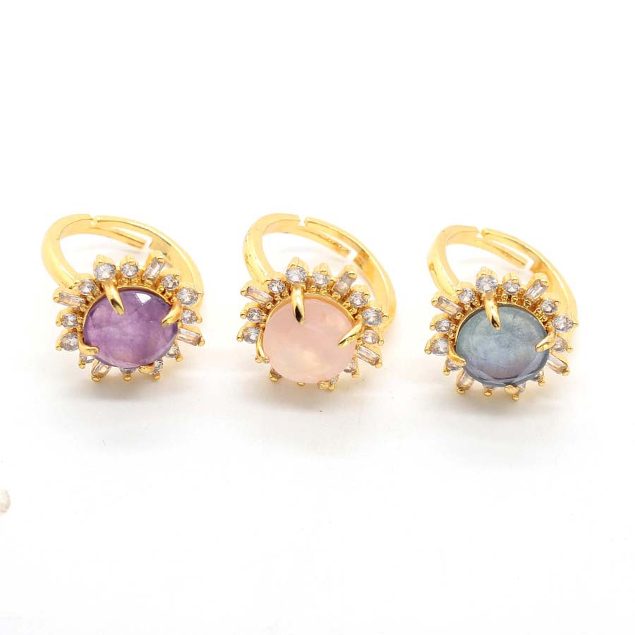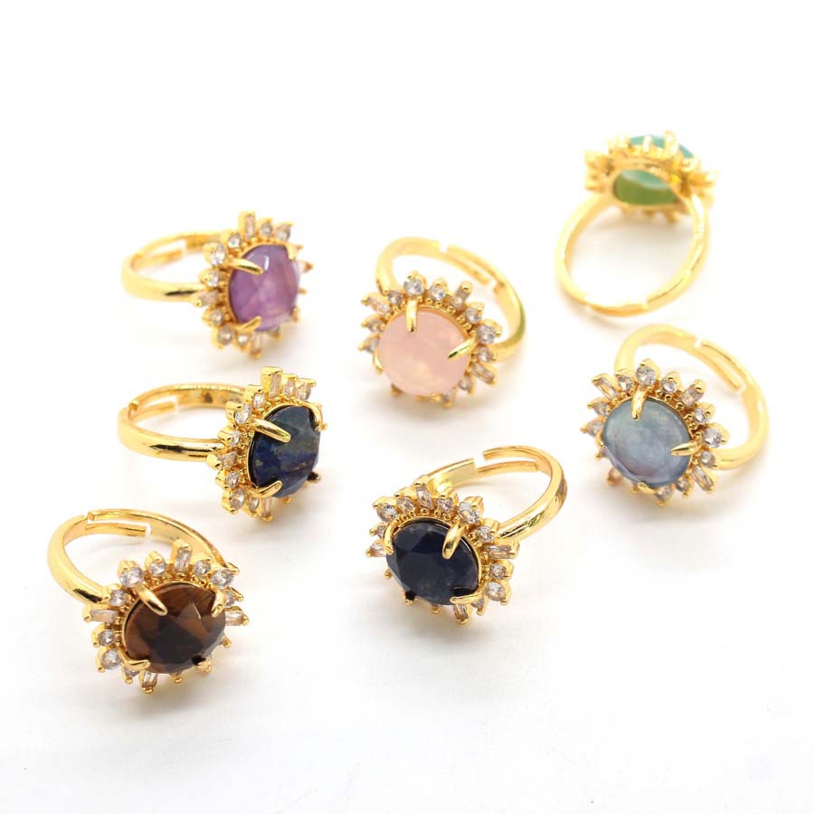 bague en alliage Zinc à Pierre précieuse , alliage de zinc, avec pierre gemme, Placage de couleur d'or, bijoux de mode & avec strass, plus de couleurs à choisir, 19x19mm, Vendu par PC