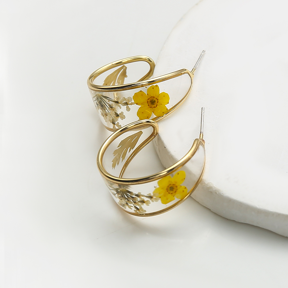 bijoux de boucles d'oreilles en résine, laiton, avec Fleurs séchées & résine, Placage, bijoux de mode, couleurs mélangées, 21.89x11.31x28.55mm, Vendu par paire