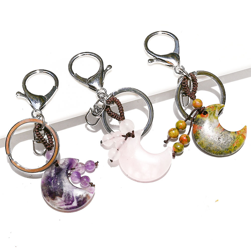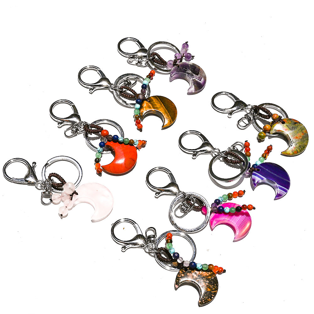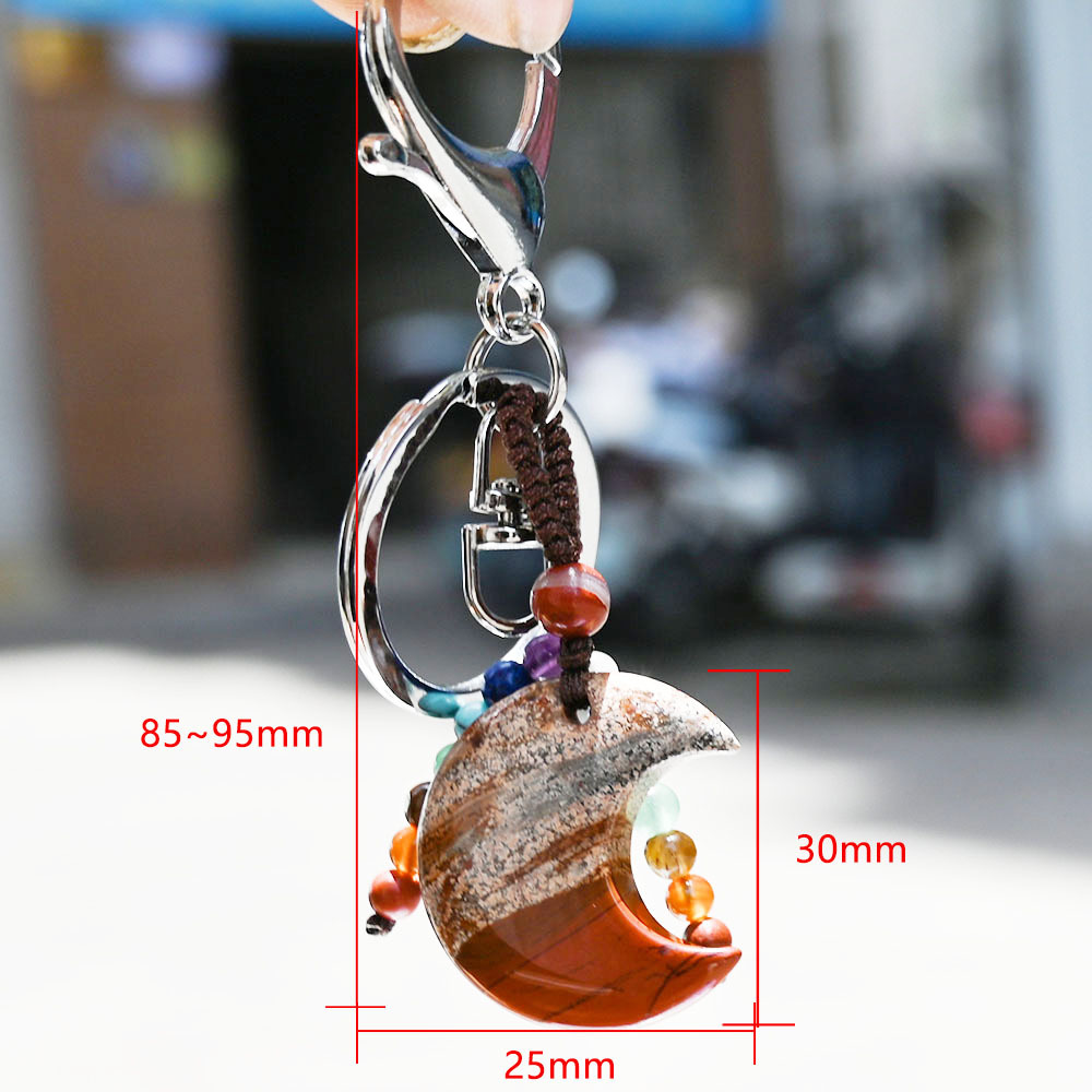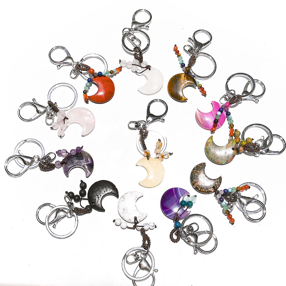 bijoux de porte-clés en Alliage de zinc, Pierre naturelle, avec alliage de zinc, lune, bijoux de mode & différents matériaux pour le choix, plus de couleurs à choisir, 20x30x6mm, Vendu par PC