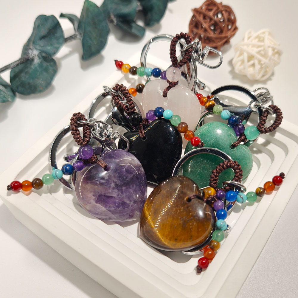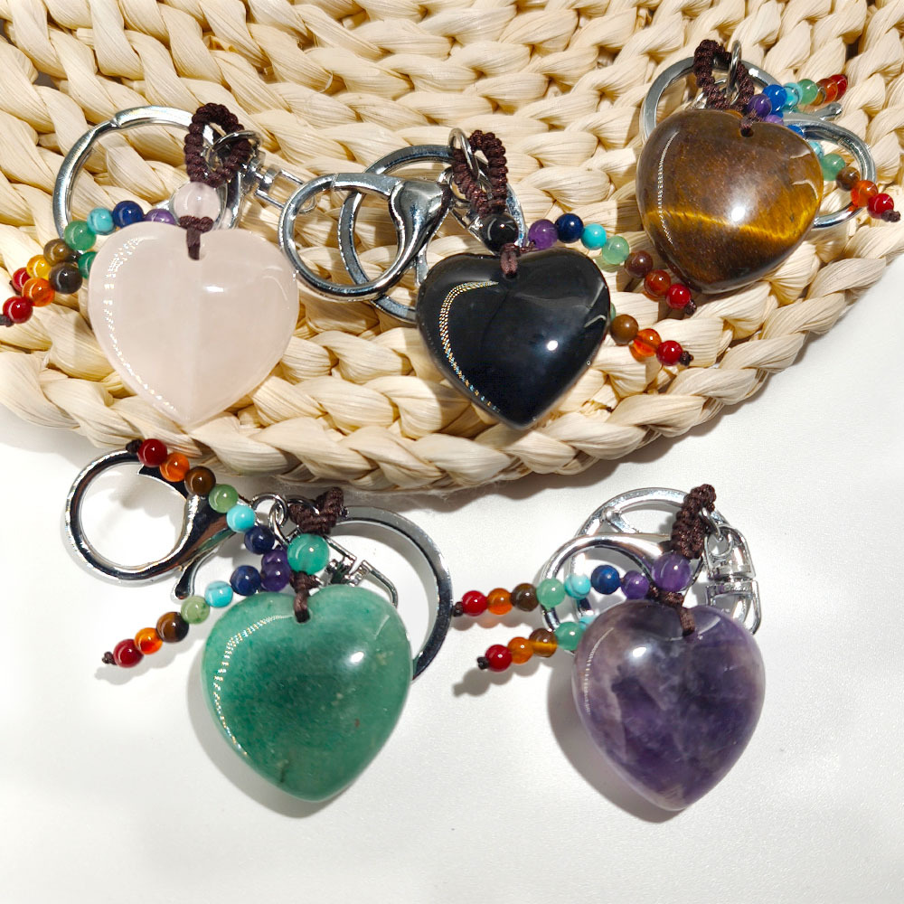 bijoux de porte-clés en Alliage de zinc, avec Pierre naturelle, coeur, bijoux de mode & différents matériaux pour le choix, plus de couleurs à choisir, Vendu par PC