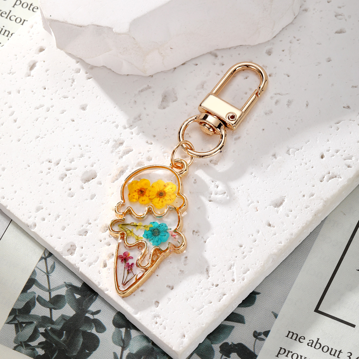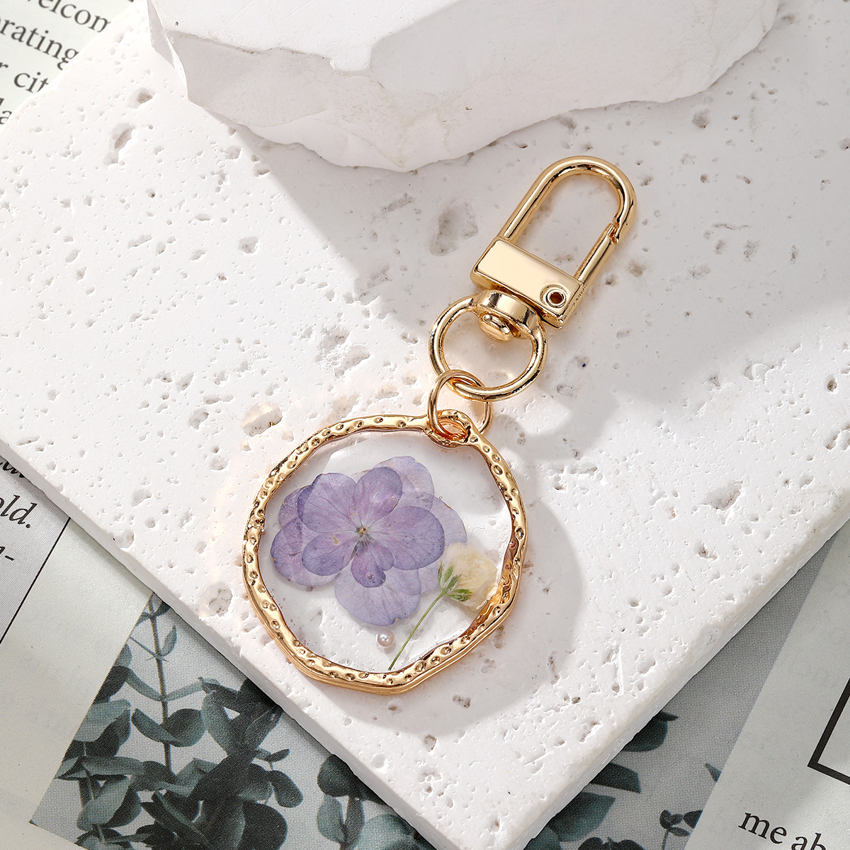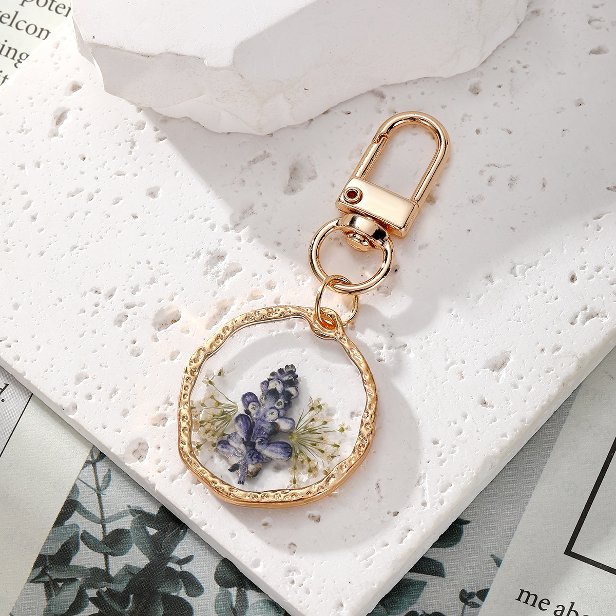 bijoux de porte-clés en Alliage de zinc, plastique, avec Fleurs séchées & alliage de zinc, goutté d'époxy, DIY, plus de couleurs à choisir, Vendu par PC