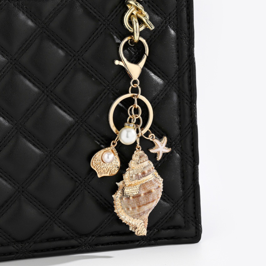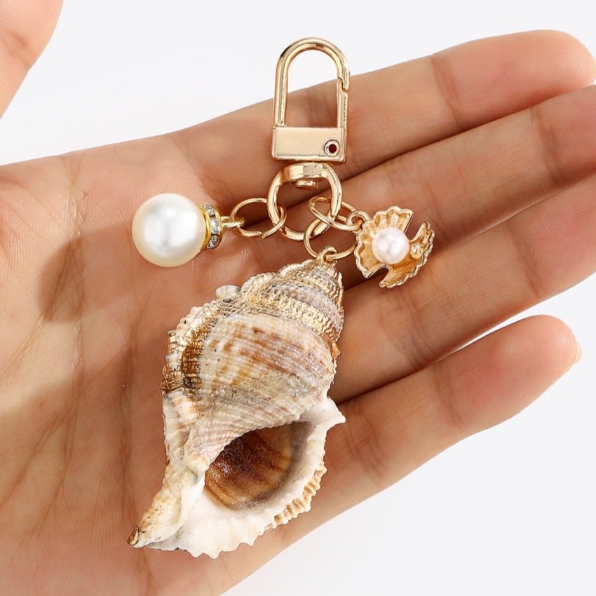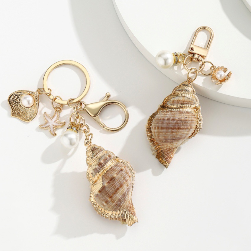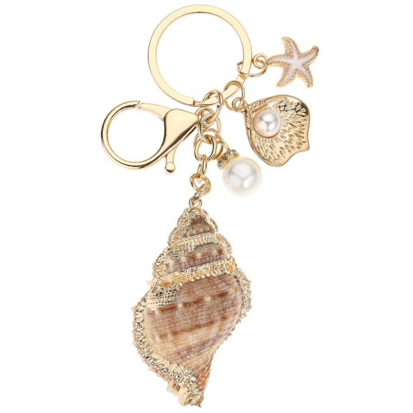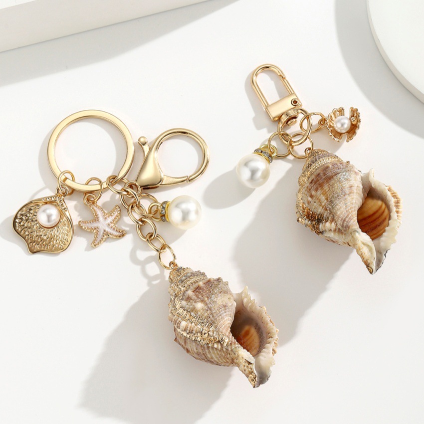 bijoux de porte-clés en Alliage de zinc, avec Plastique ABS perle & coquille, Placage de couleur d'or, bijoux de mode, plus de couleurs à choisir, Vendu par PC