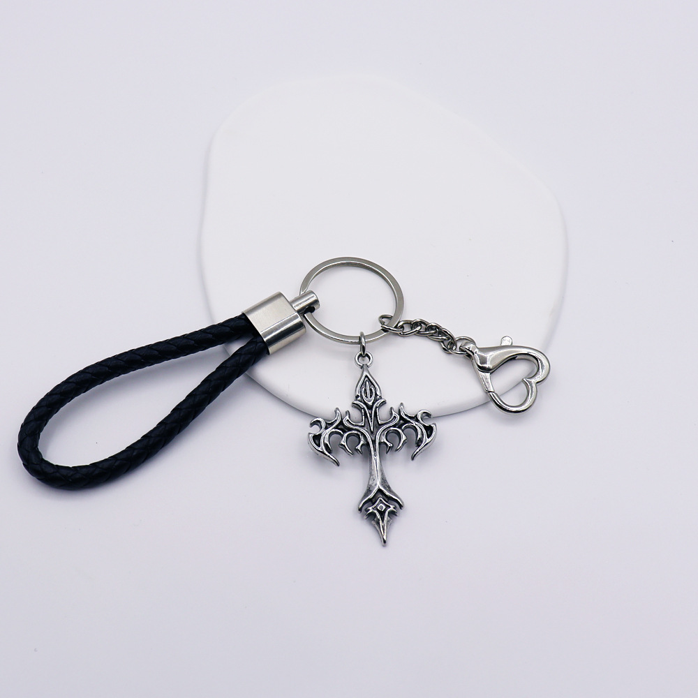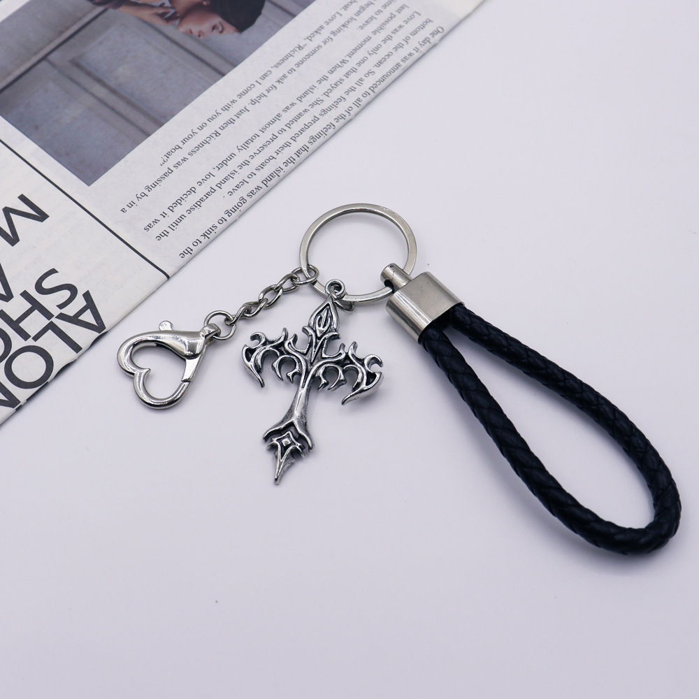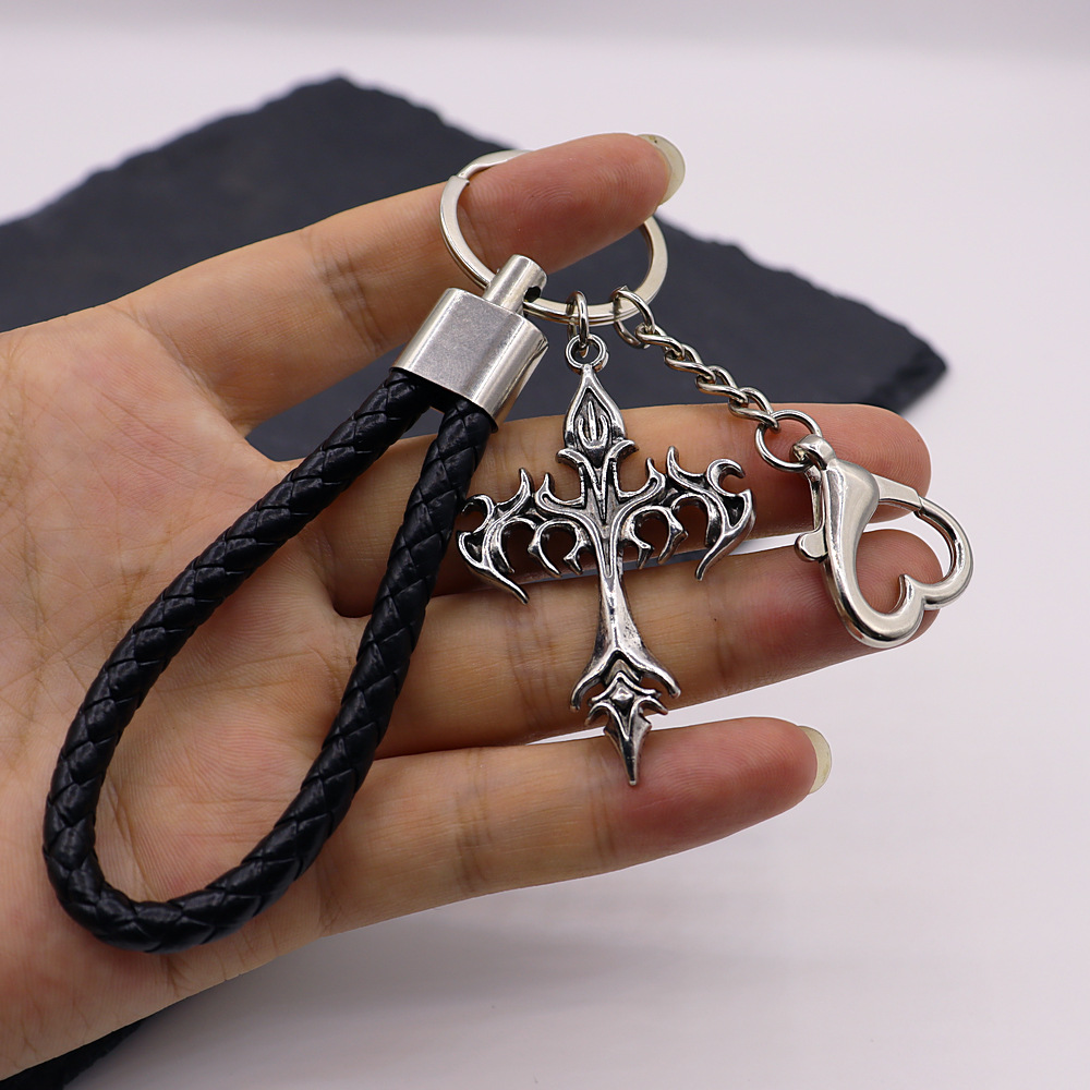 bijoux de porte-clés en Alliage de zinc, avec cuir PU, Placage de couleur noire de plumbum, plus de couleurs à choisir, protéger l'environnement, sans nickel, plomb et cadmium Environ 6.7 pouce, Vendu par brin