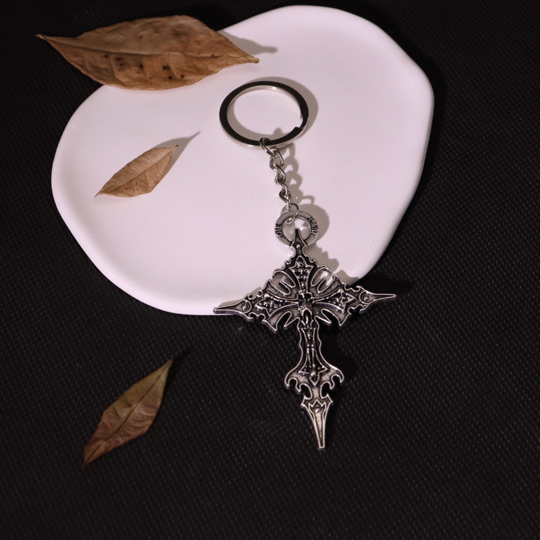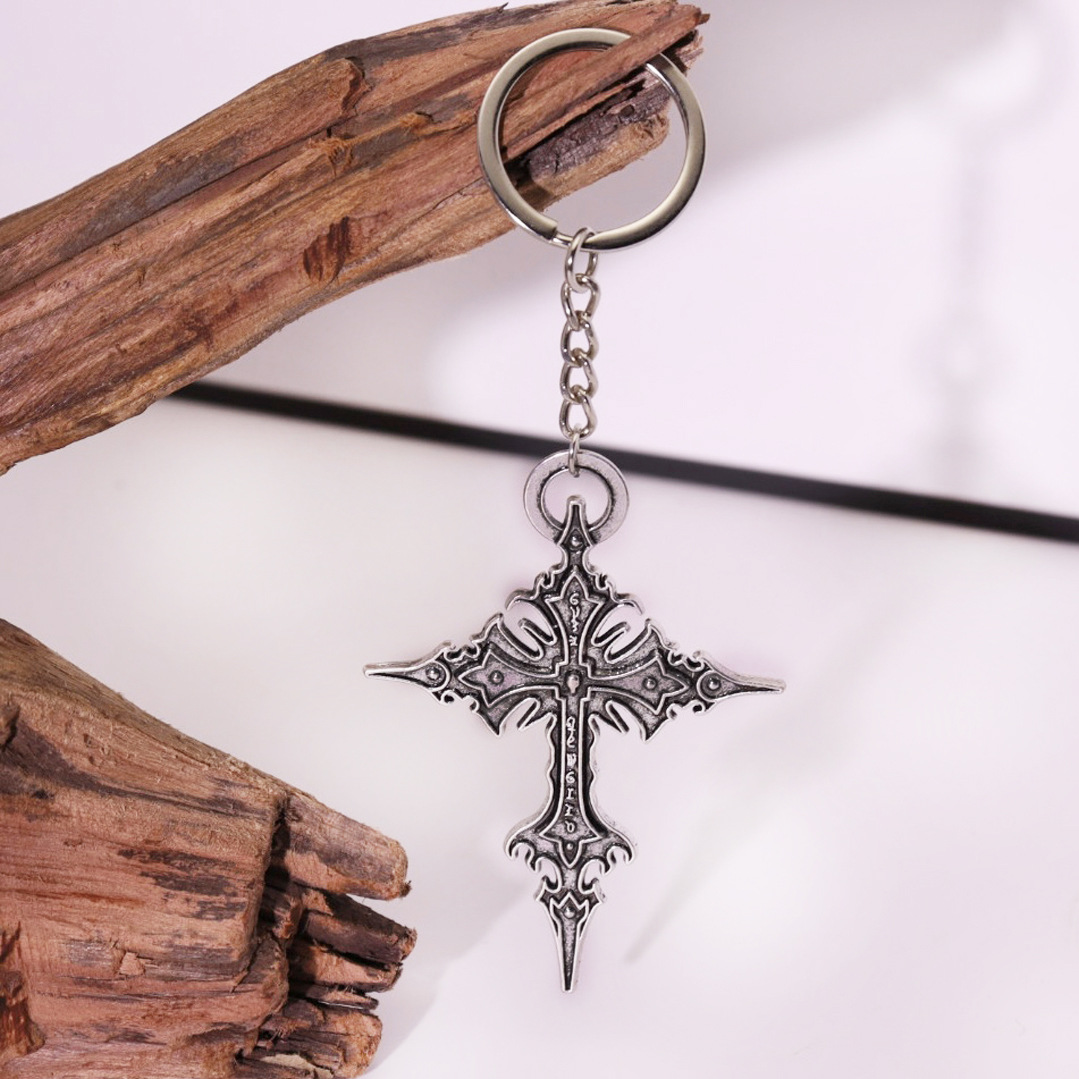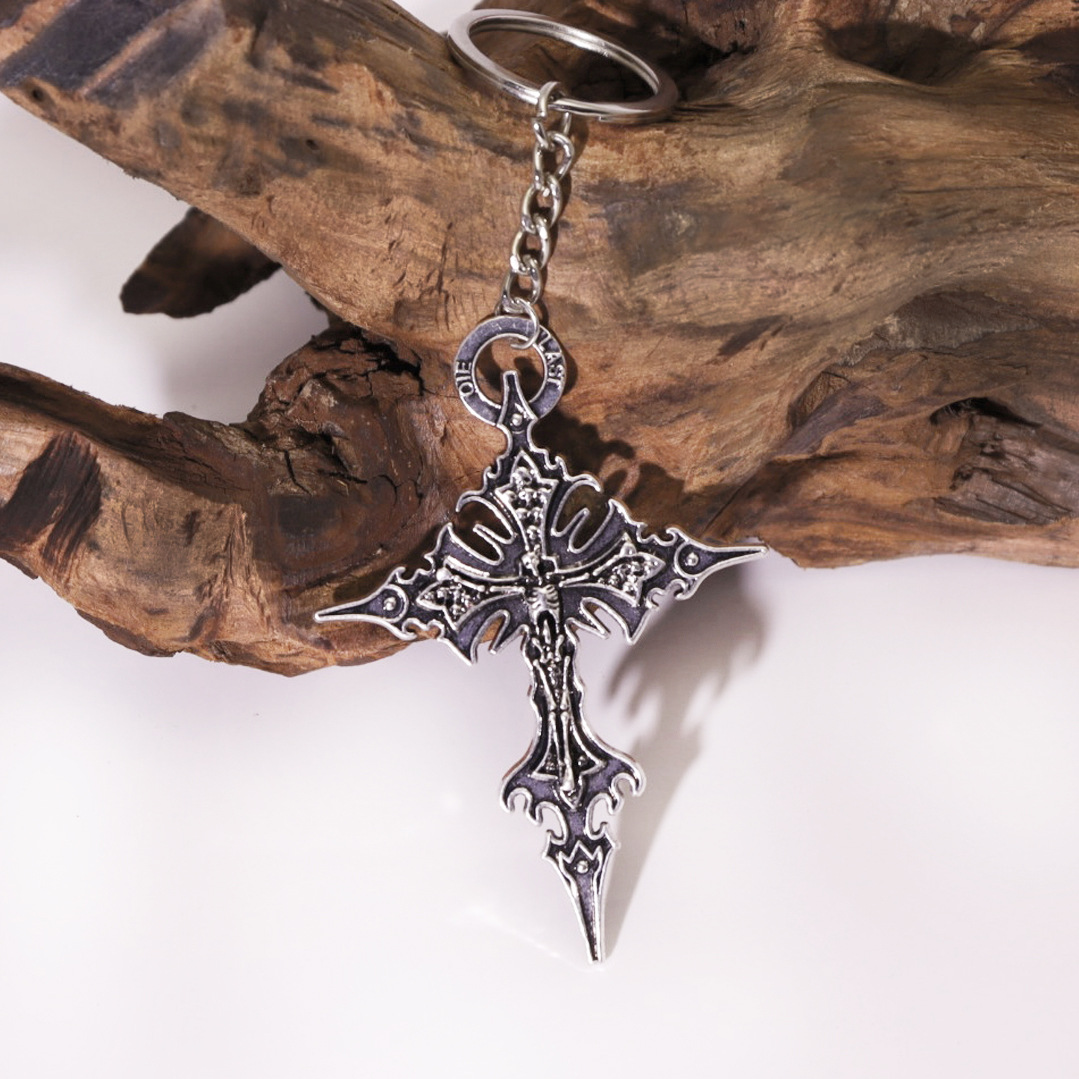 bijoux de porte-clés en Alliage de zinc, croix, Placage de couleur d'or, bijoux de mode, argent, Vendu par PC