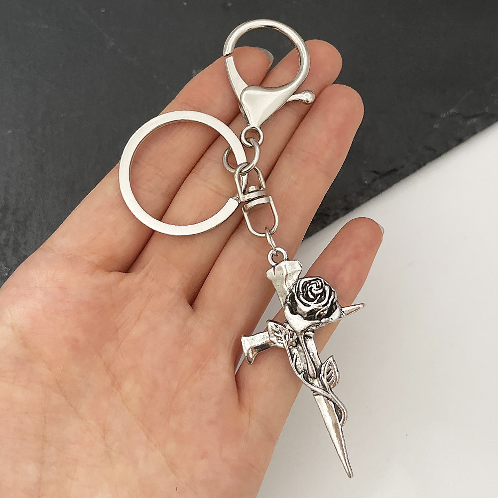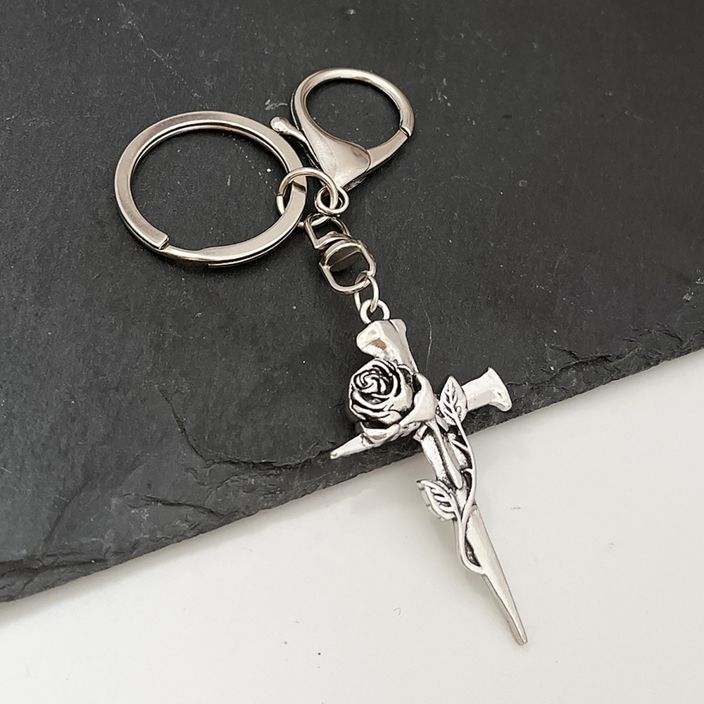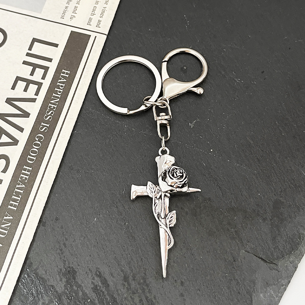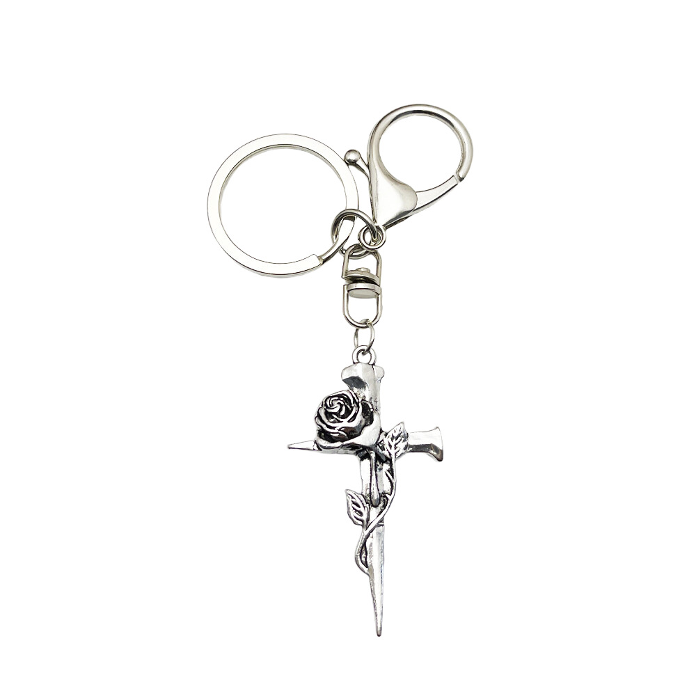 bijoux de porte-clés en Alliage de zinc, croix, Placage de couleur d'or, bijoux de mode, argent, Vendu par PC