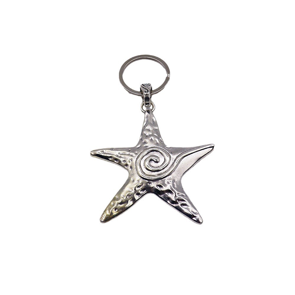 bijoux de porte-clés en Alliage de zinc, étoile de mer, Placage de couleur d'or, bijoux de mode, argent, Vendu par PC