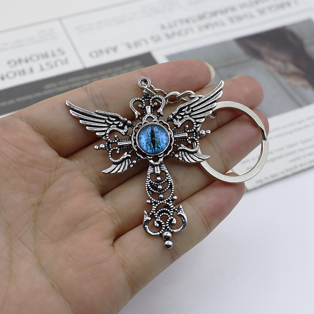bijoux de porte-clés en Alliage de zinc, avec verre, croix, Placage de couleur d'or, bijoux de mode, plus de couleurs à choisir, Vendu par PC
