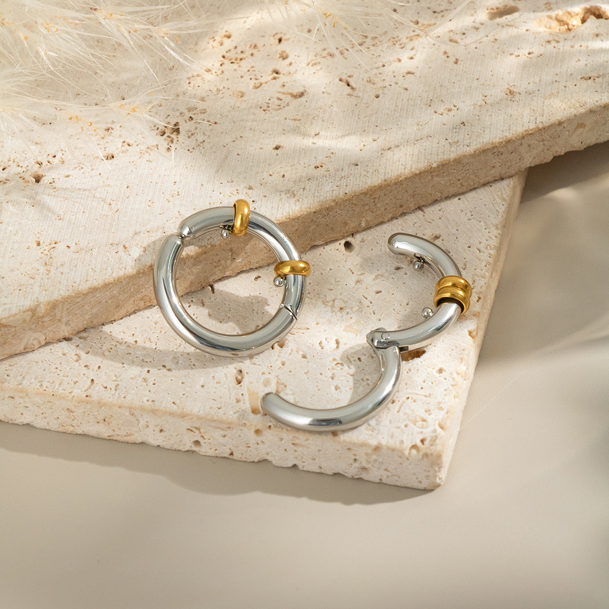 boucle d'oreille de clip en inox, acier inoxydable, beignet, givré, couleur originale Vendu par paire