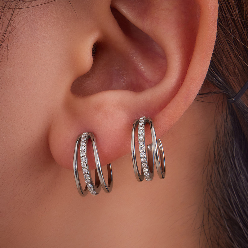 Steel-colored three-layer zircon ear clip - single