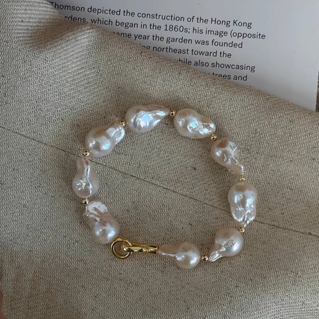 bracelet en laiton de perle d'eau douce cultivée, avec laiton, Baroque, Placage de couleur d'or, bijoux de mode, blanc, 11x13mm, Vendu par brin