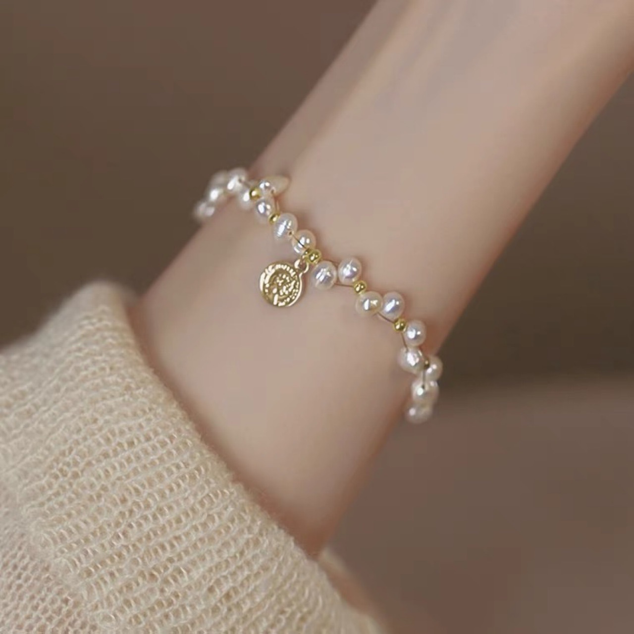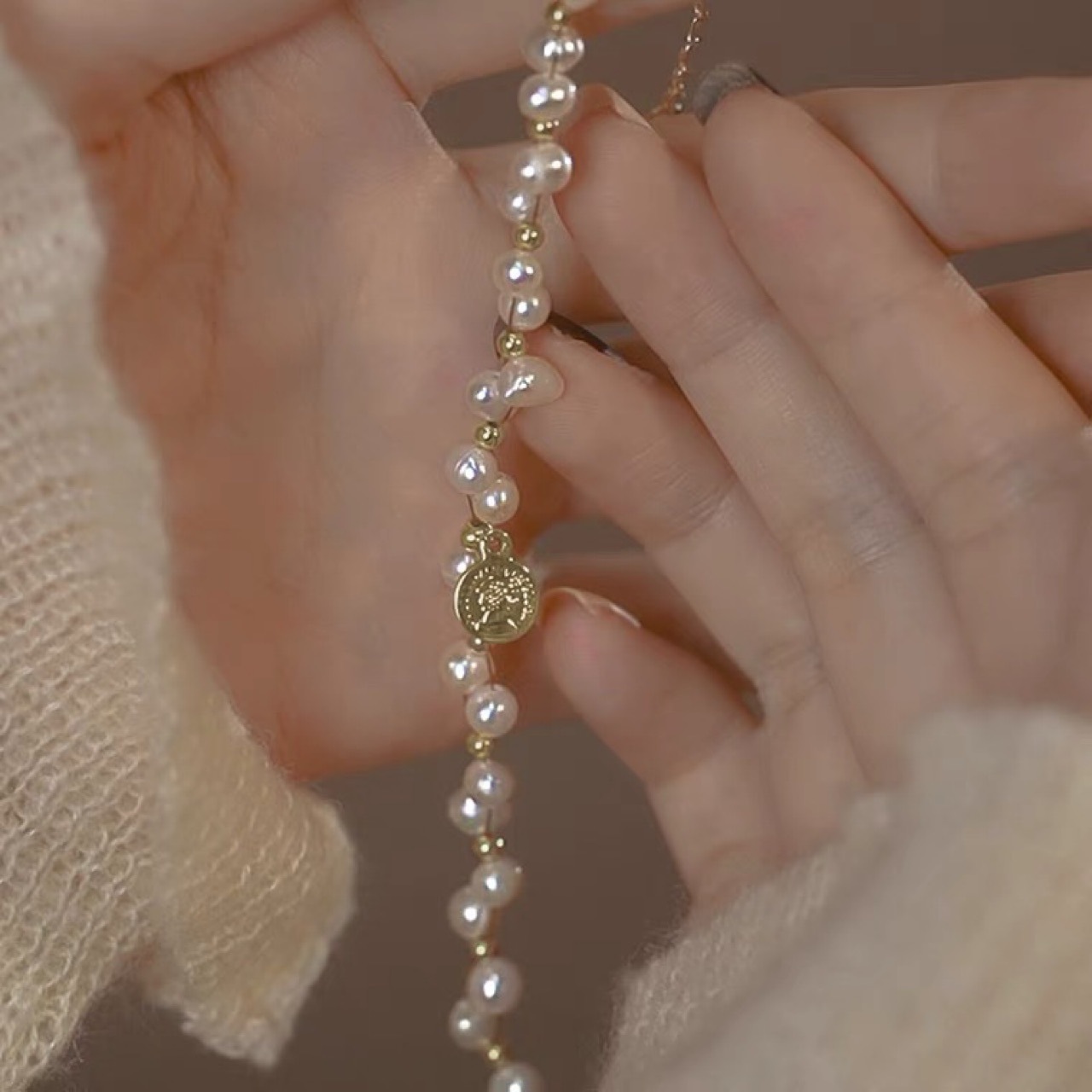 bracelet en laiton de perle d'eau douce cultivée, avec laiton, Irrégulière, Placage de couleur d'or, bijoux de mode, blanc, 4x5mm, Vendu par brin