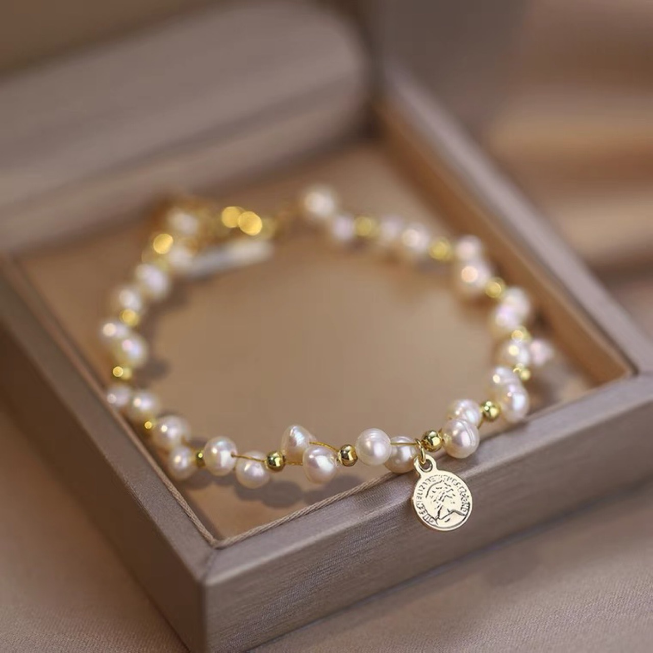 bracelet en laiton de perle d'eau douce cultivée, avec laiton, coeur, Placage, naturel & bracelet à breloques, plus de couleurs à choisir, 10-11mm Environ 7 pouce, Vendu par brin