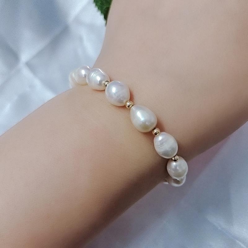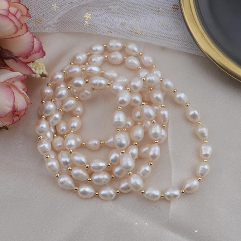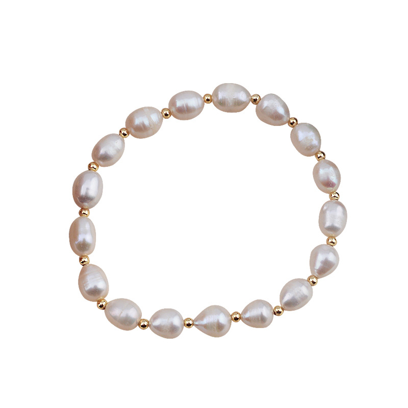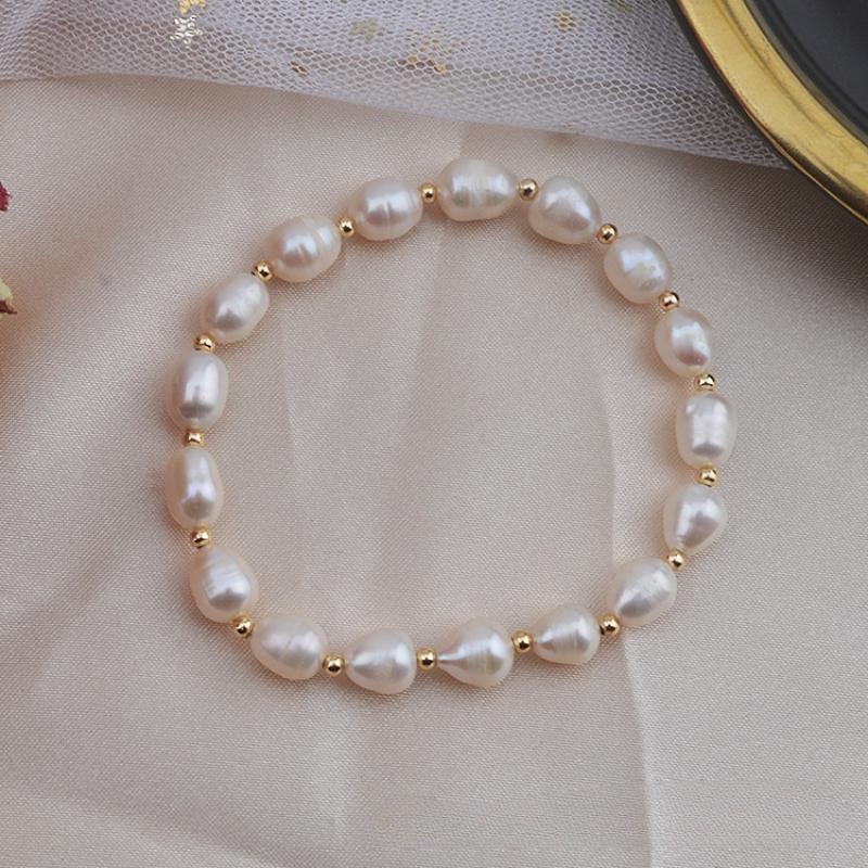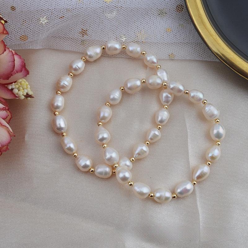 bracelet en laiton de perle d'eau douce cultivée, avec laiton, riz, Placage de couleur d'or, bijoux de mode, blanc, 7x8mm, Vendu par brin