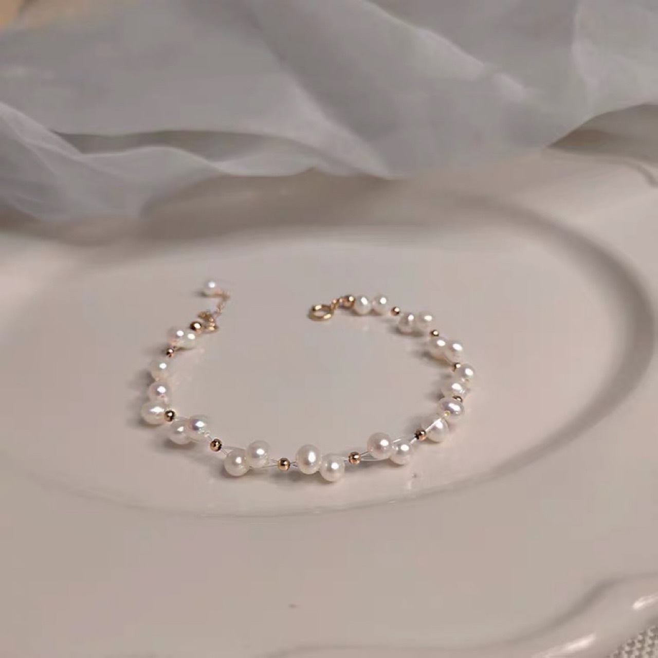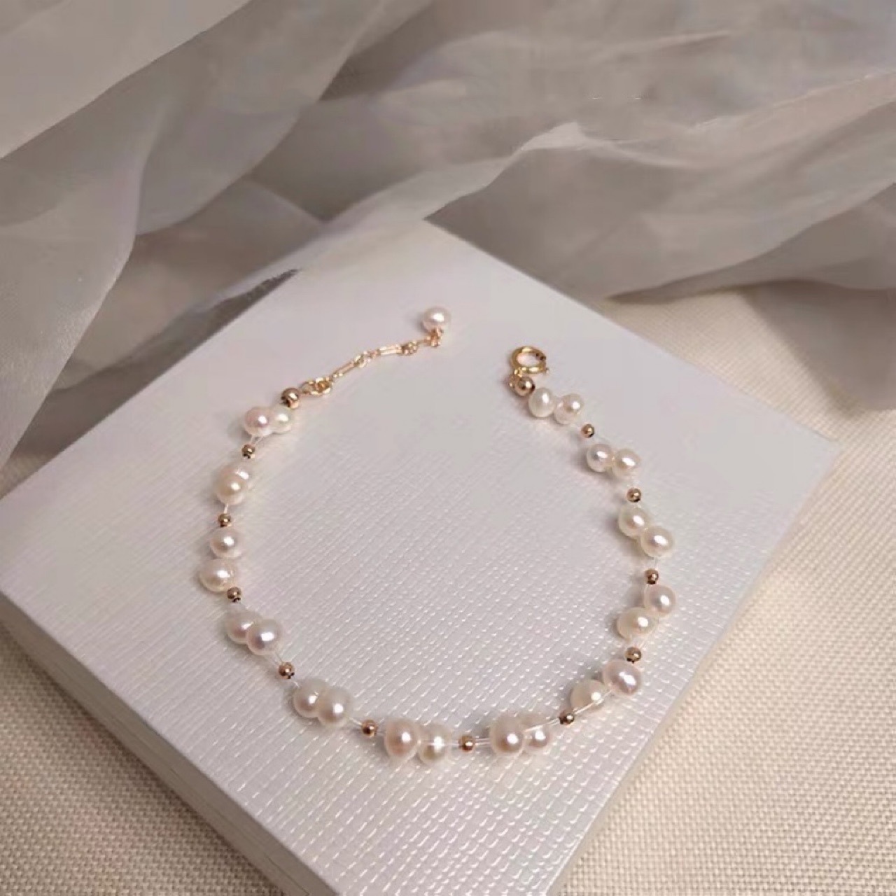 bracelet en laiton de perle d'eau douce cultivée, avec laiton, poisson, Placage, naturel & bracelet à breloques, plus de couleurs à choisir, protéger l'environnement, sans nickel, plomb et cadmium, 9-10mm Environ 6 pouce, Vendu par brin