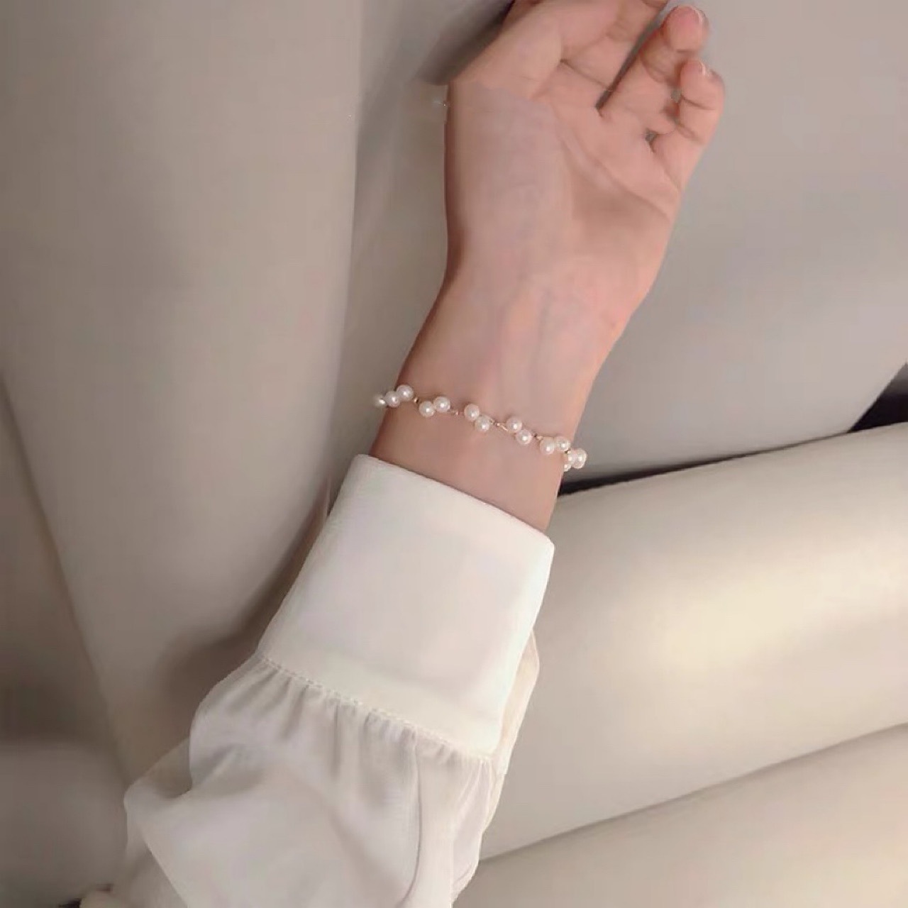 bracelet en laiton de perle d'eau douce cultivée, avec laiton, Placage, pour femme & avec strass, plus de couleurs à choisir, 8-9mm .5 pouce, Vendu par brin