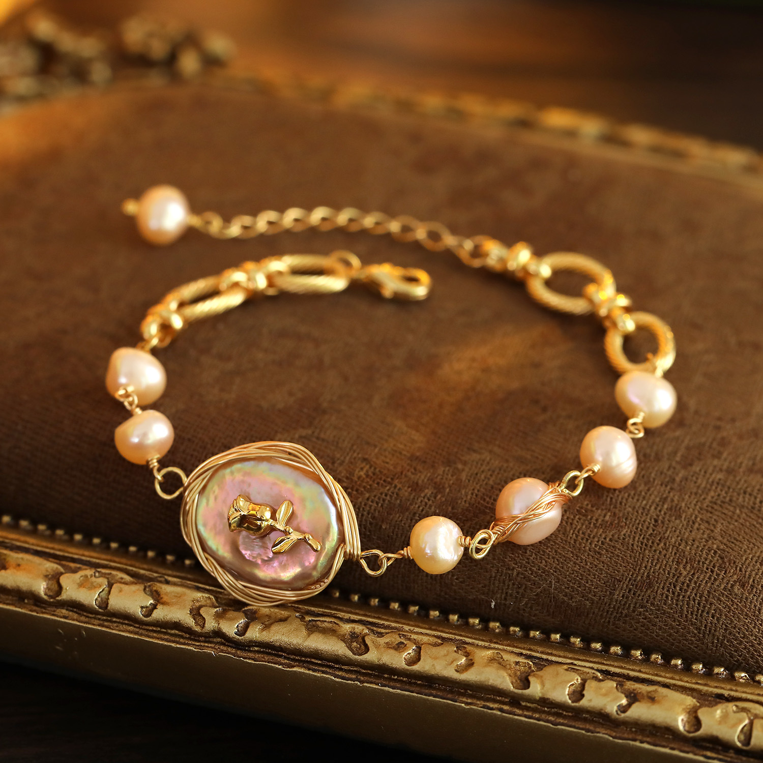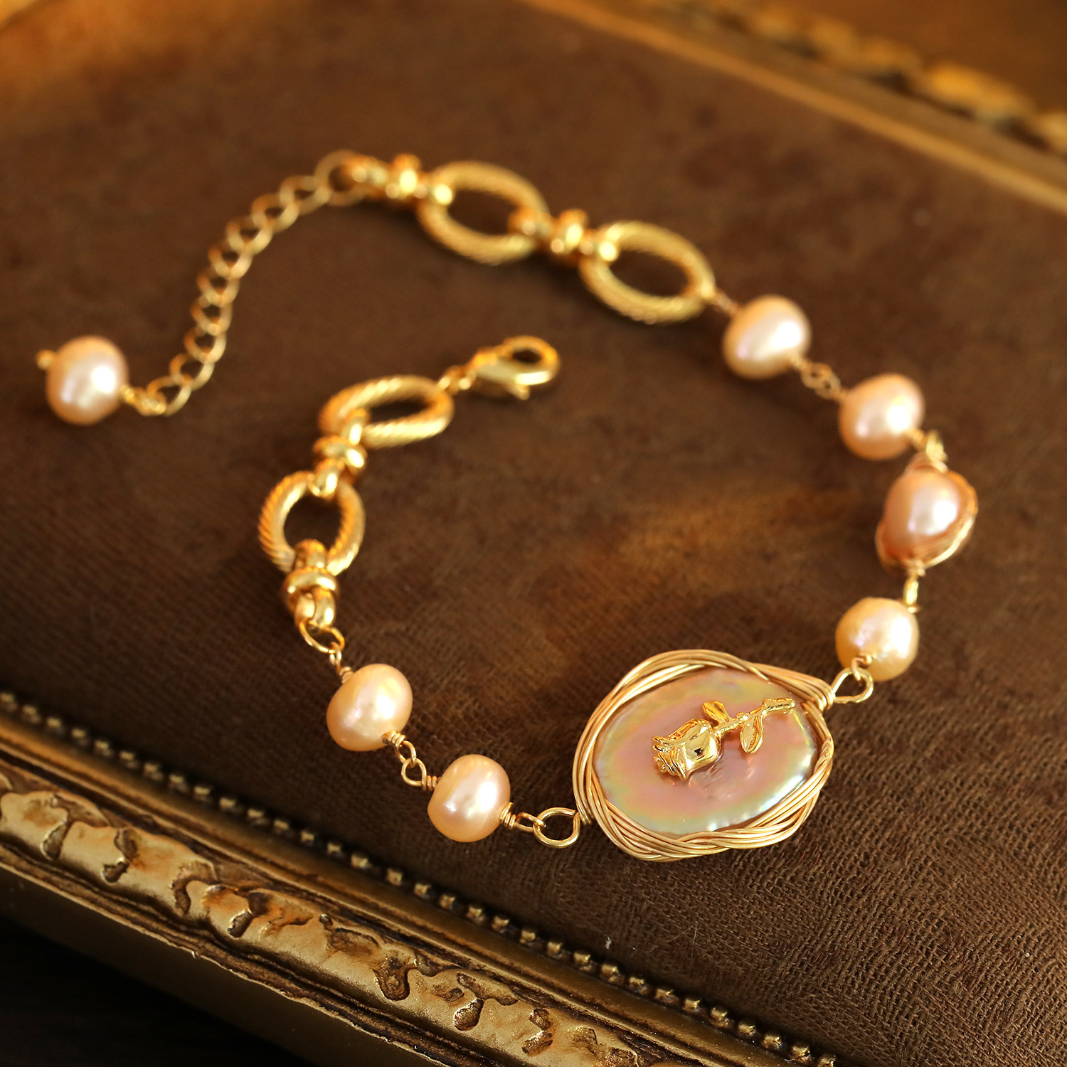 bracelet en laiton de perle d'eau douce cultivée, avec laiton, éléphant, Placage, styles différents pour le choix & pour femme, 9-10mm, Vendu par brin