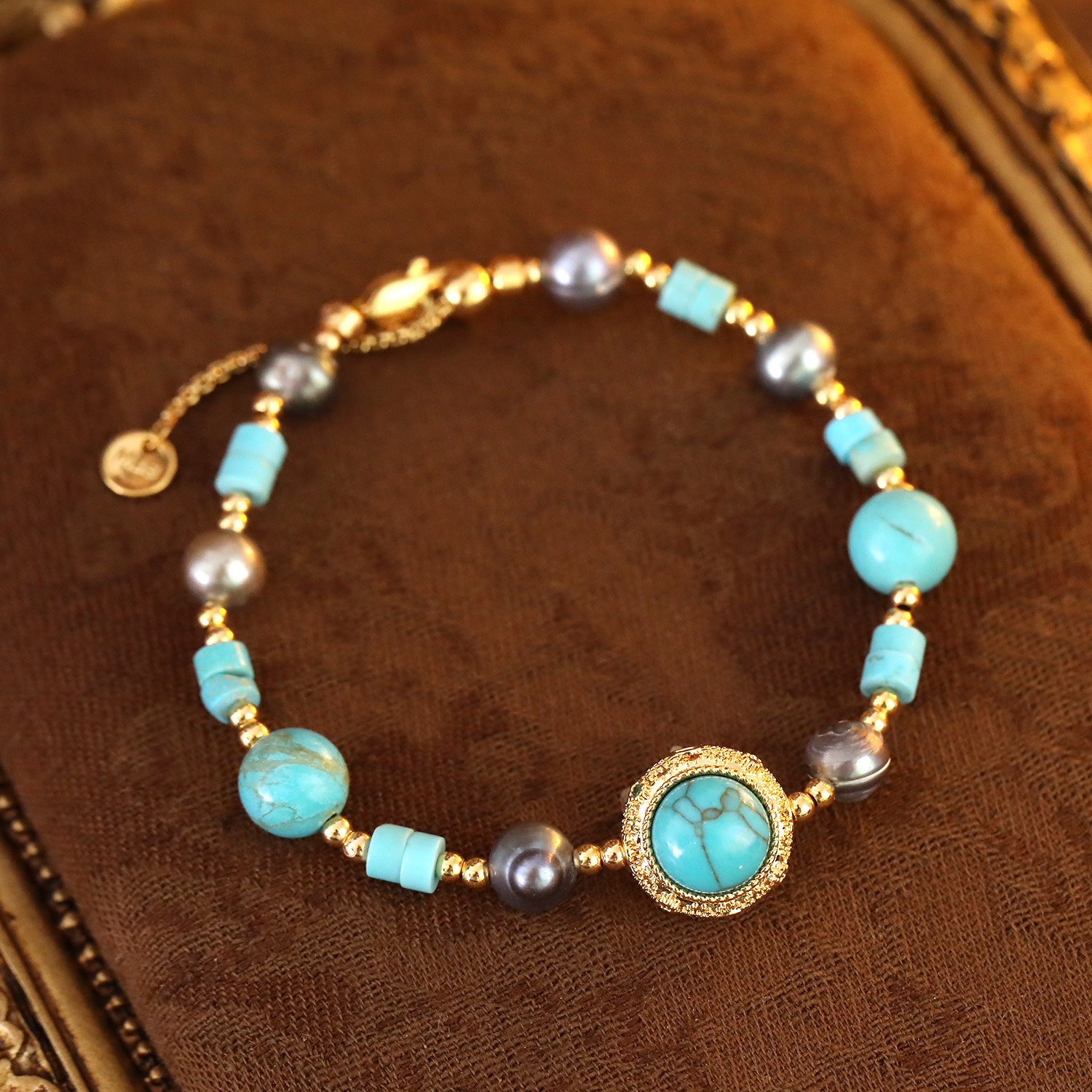 • Taille : Turquoise 8mm, irregular pearl 7mm
