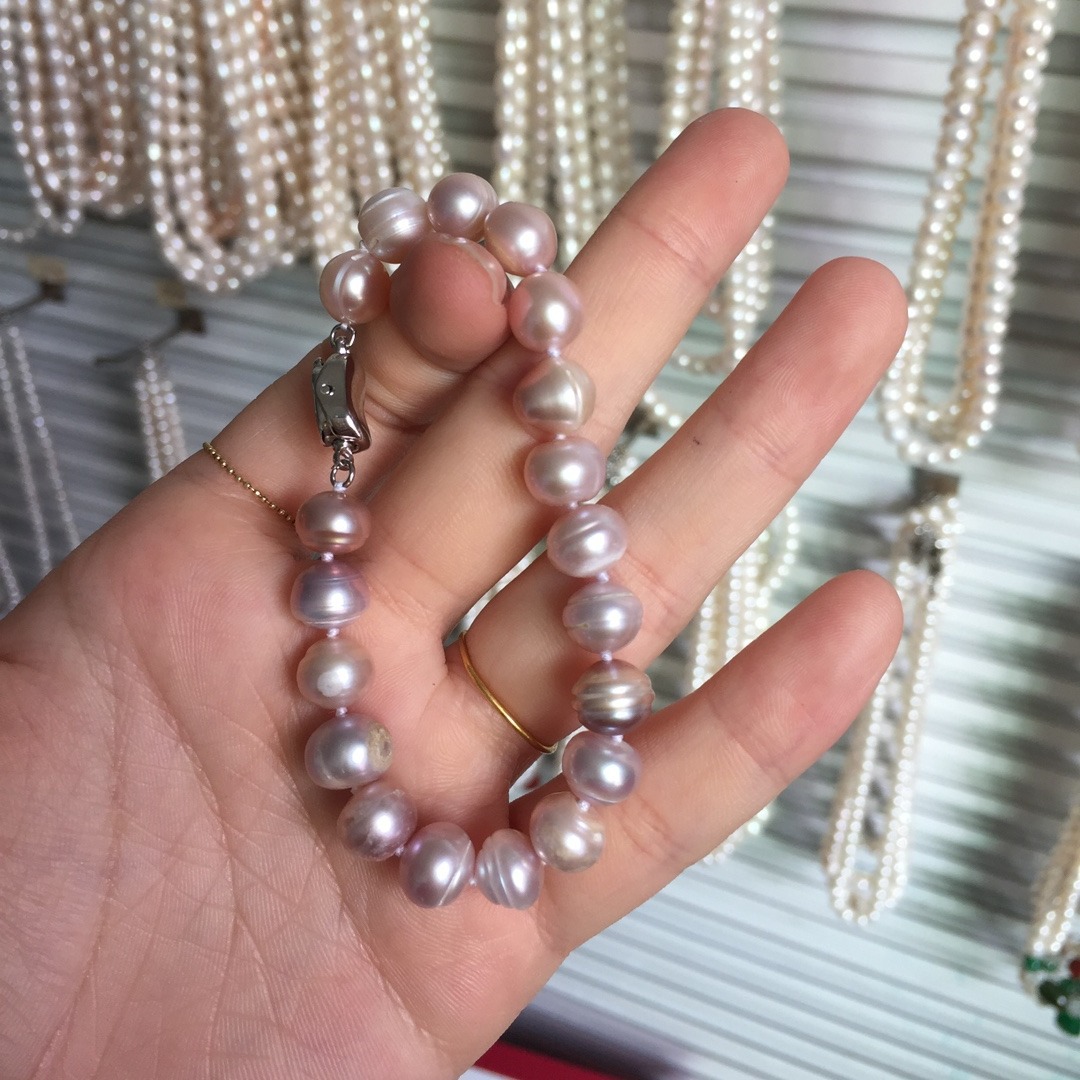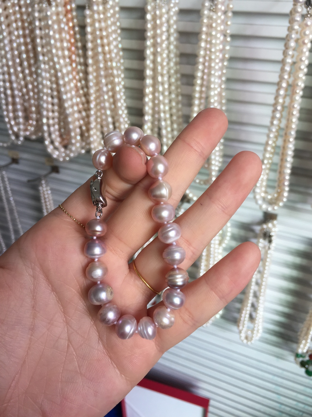 bracelet en laiton de perle d'eau douce cultivée, avec laiton, Rond, pour femme, violet, About:8-9MM, Vendu par brin