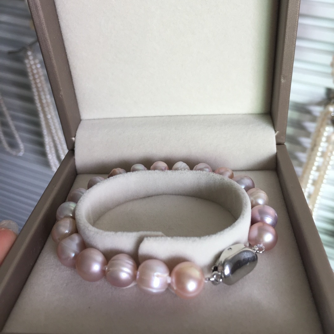 bracelet en laiton de perle d'eau douce cultivée, avec laiton, coeur, Placage, naturel & bracelet à breloques, plus de couleurs à choisir, 10-11mm Environ 7 pouce, Vendu par brin
