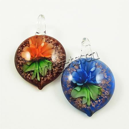 Pendentifs Murano fleur intérieur, chalumeau, coeur, sable d'or & deux tons & fleur intérieure, plus de couleurs à choisir, 34x38x13mm, Trou:Environ 9mm, Vendu par PC