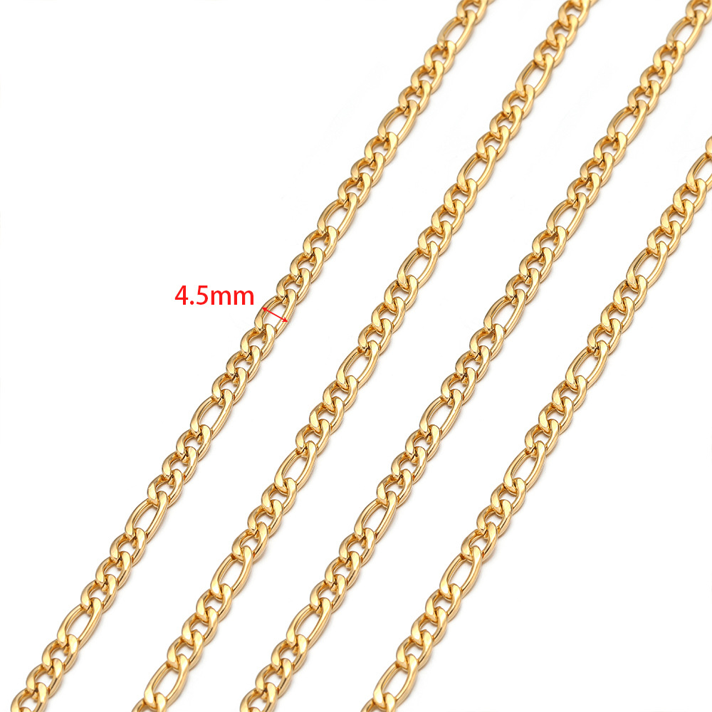 chaîne de gourmette en inox, Acier inoxydable 304, Placage de couleur d'or, DIY, plus de couleurs à choisir, 2m/sac, Vendu par sac