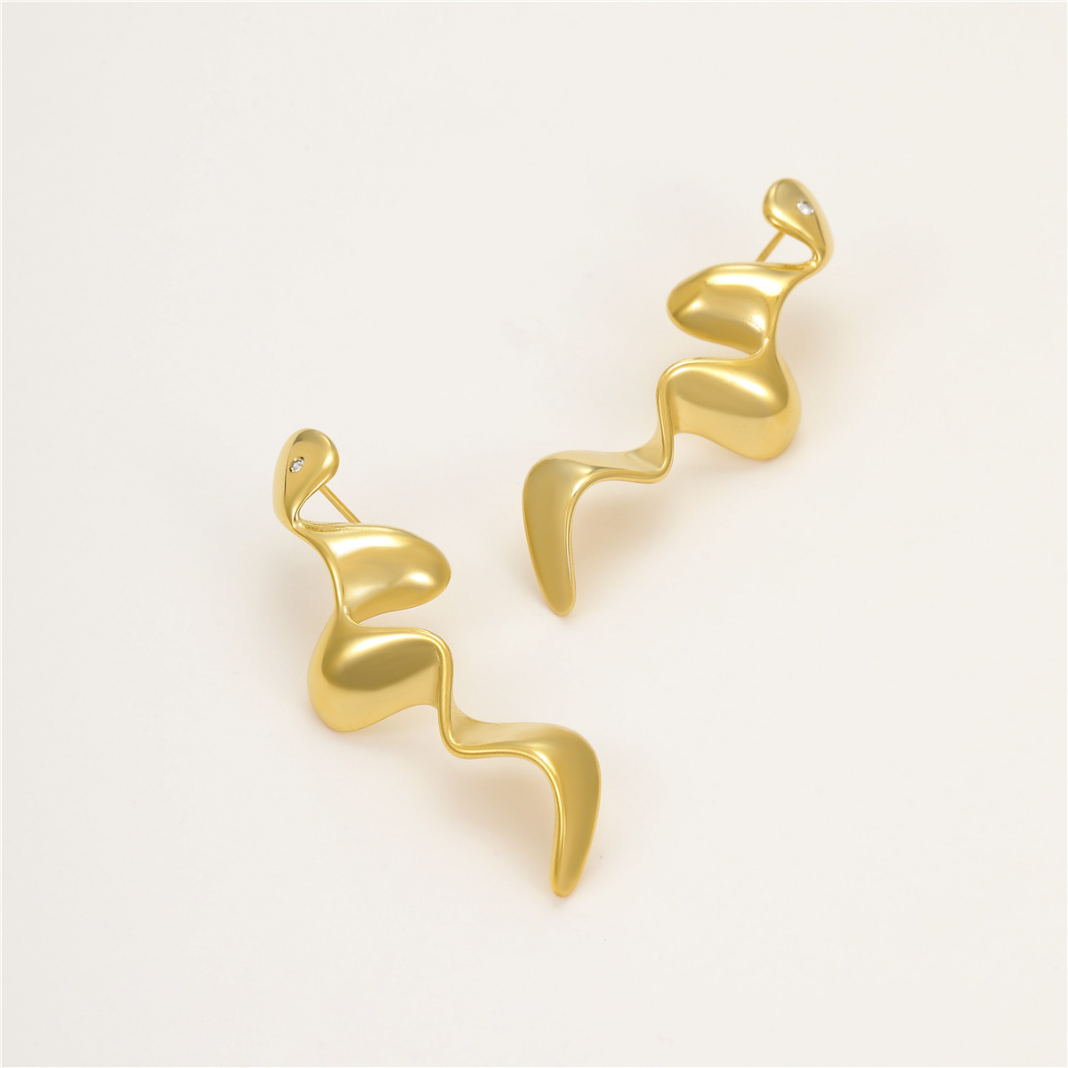 clou d'oreille en acier inoxydable avec stras, Acier inoxydable 304, serpent, Plaqué or 18K, bijoux de mode & pour femme & avec strass, Vendu par paire
