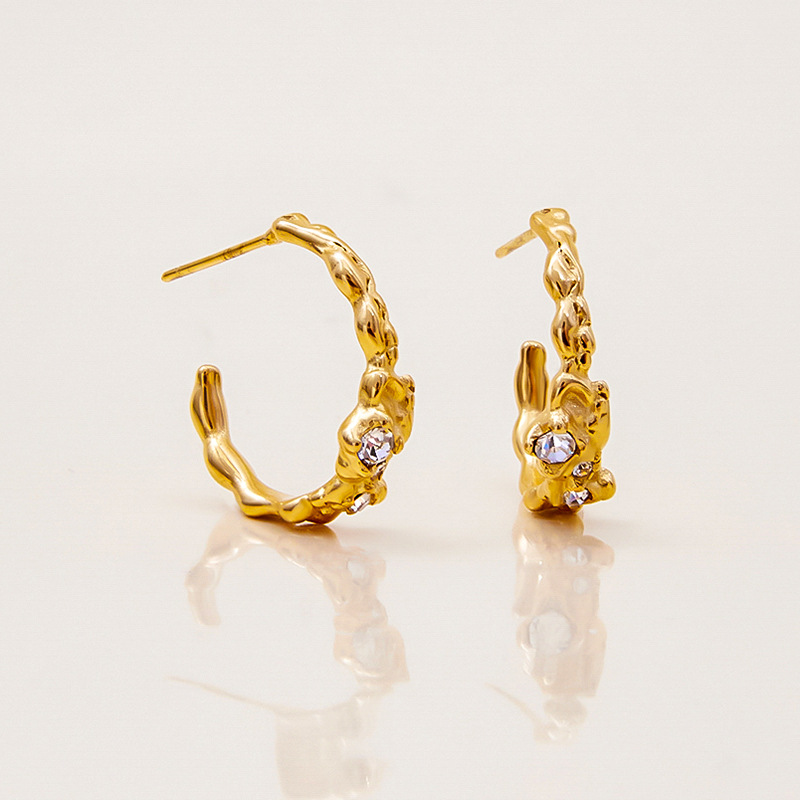 clou d'oreille en acier inoxydable avec stras, tortue, Placage de couleur d'or, avec strass Vendu par paire