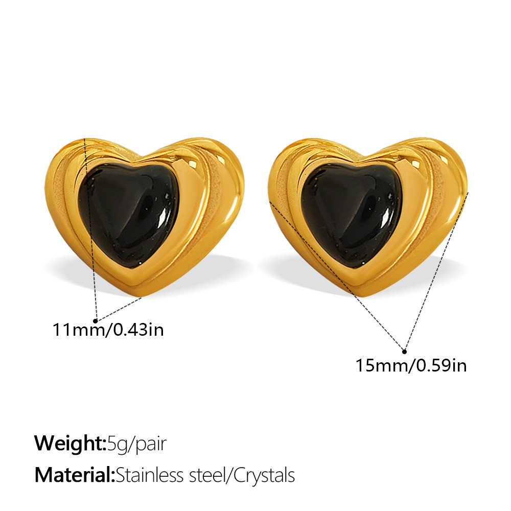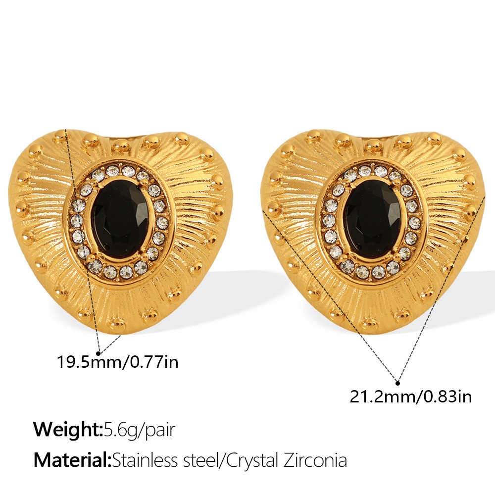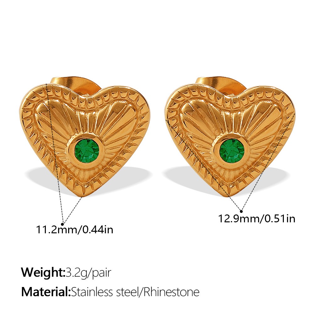 clou d'oreille en acier inoxydable avec stras, avec argile, acier inoxydable puce boucle d'oreille, coeur, avec strass, protéger l'environnement, sans nickel, plomb et cadmium 0.7mm, Vendu par paire