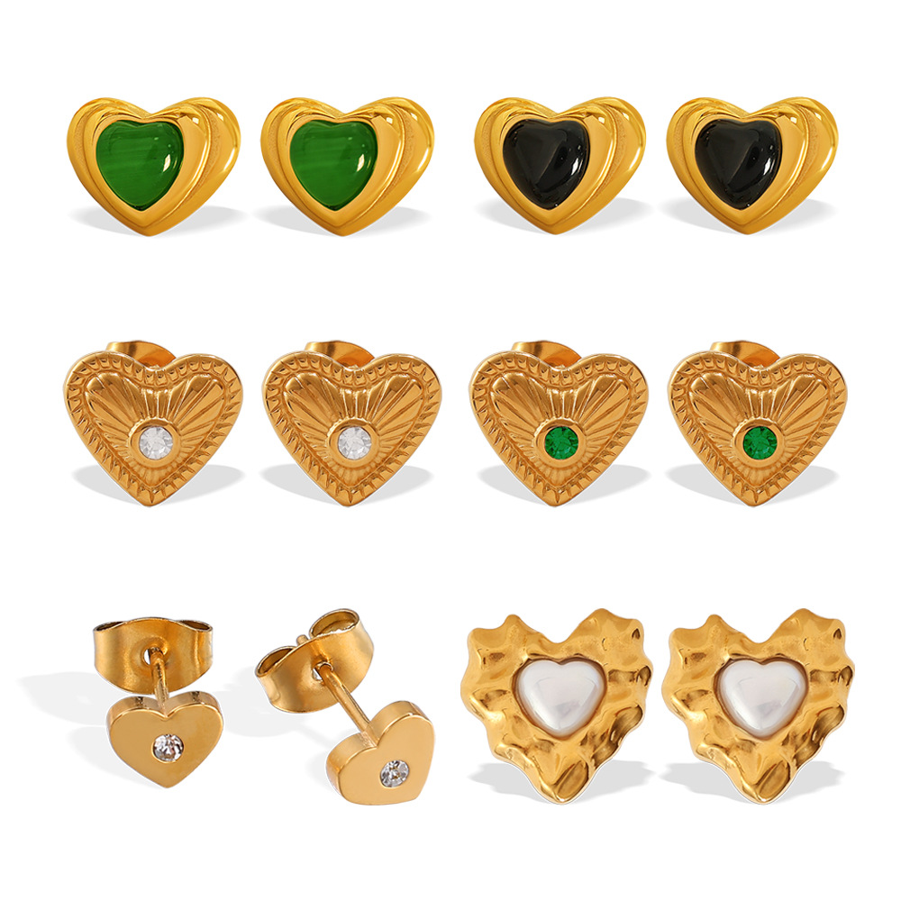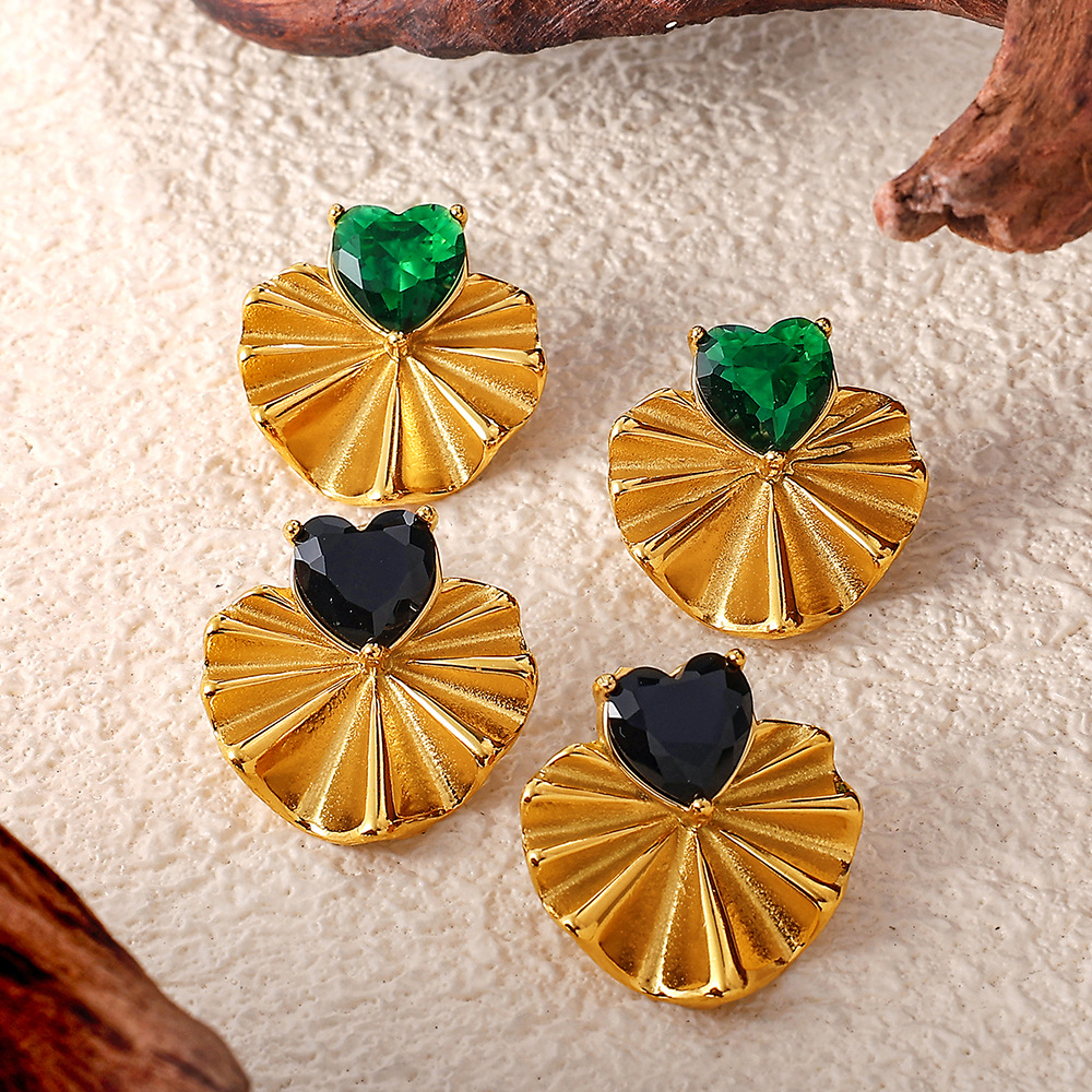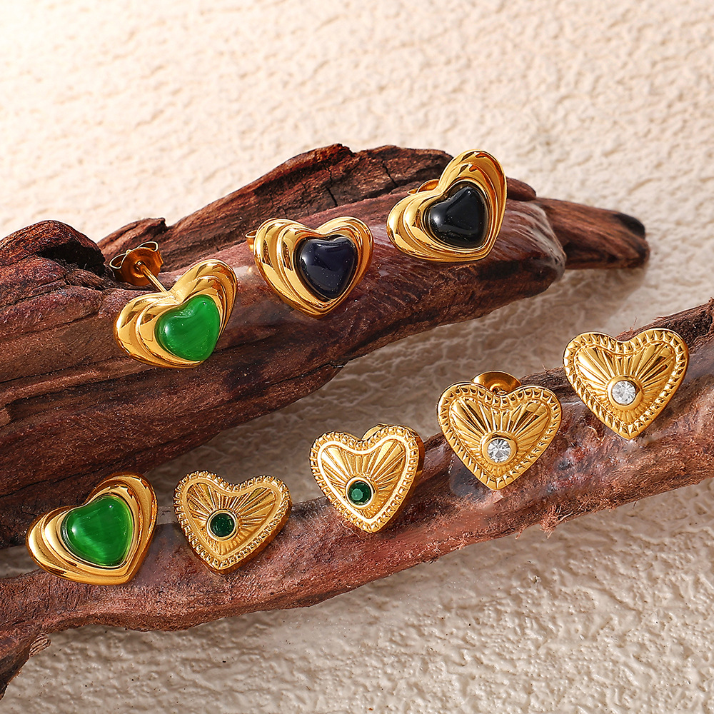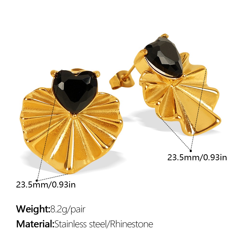 clou d'oreille en acier inoxydable avec stras, avec argile, acier inoxydable puce boucle d'oreille, coeur, avec strass, protéger l'environnement, sans nickel, plomb et cadmium 0.7mm, Vendu par paire