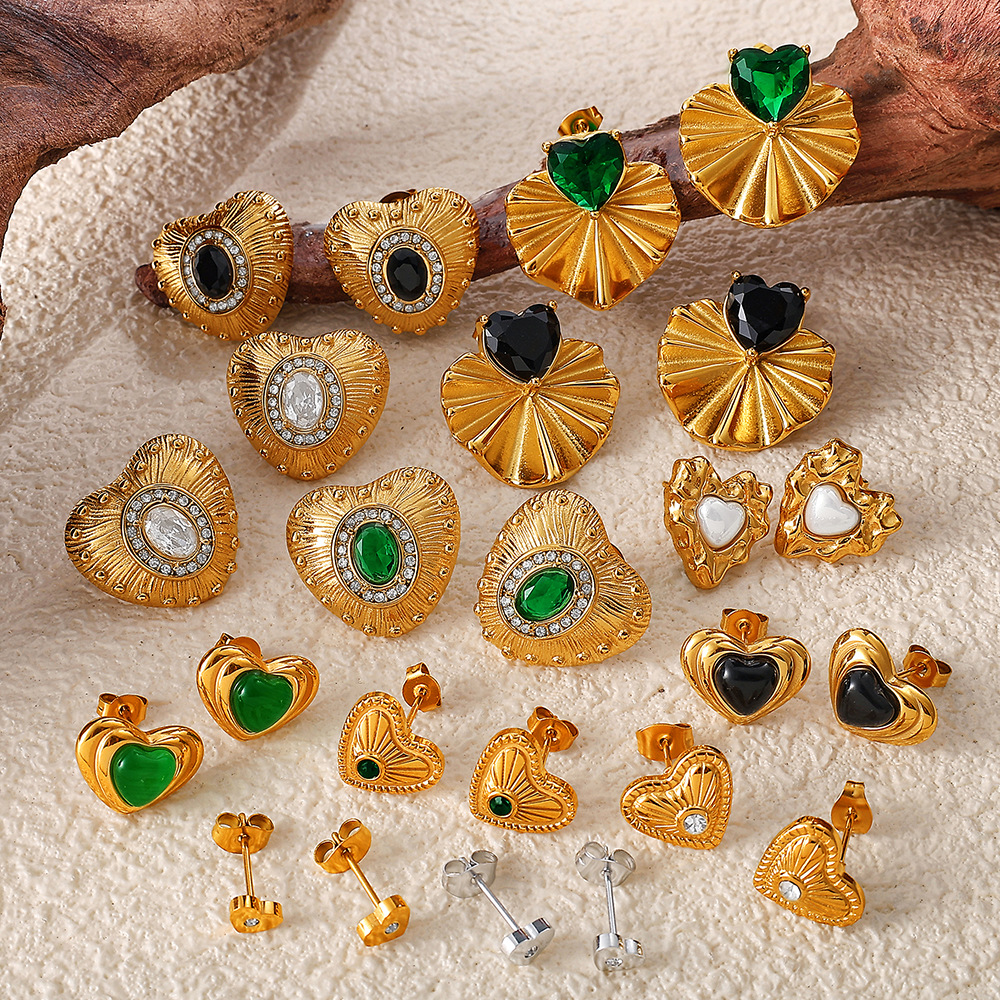 clou d'oreille en acier inoxydable avec stras, Acier inoxydable 304, Plaqué or 18K, styles différents pour le choix & pour femme & avec strass, plus de couleurs à choisir, Vendu par paire