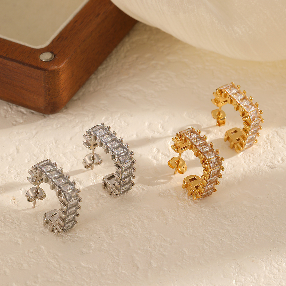 clou d'oreille en acier inoxydable avec stras, cadre, avec strass, plus de couleurs à choisir Vendu par PC