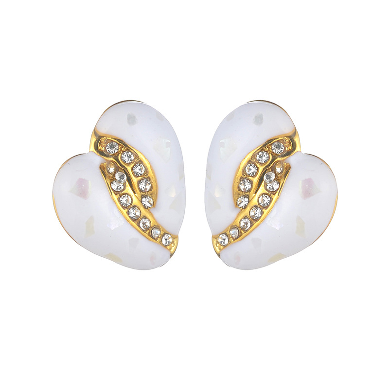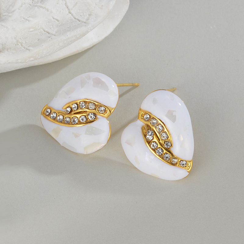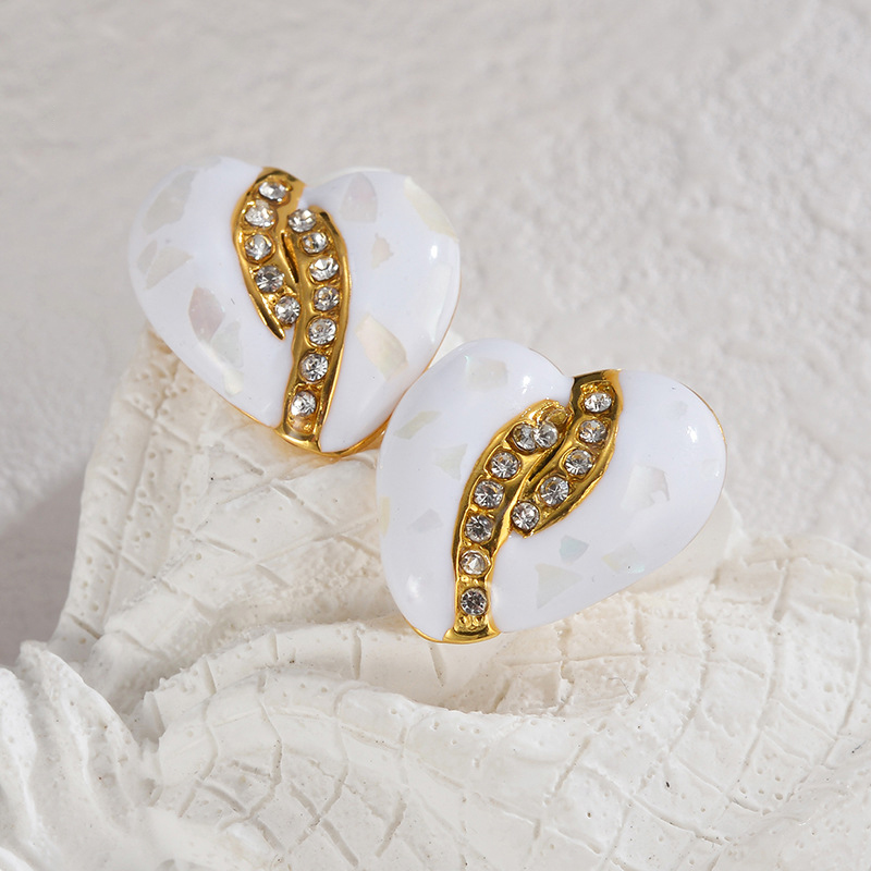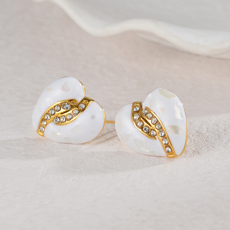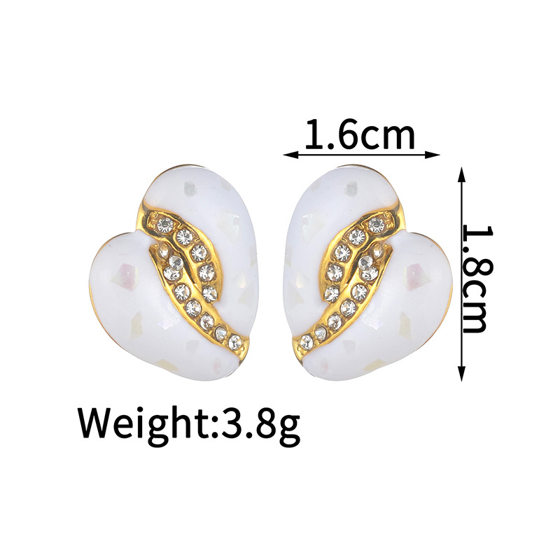 clou d'oreille en acier inoxydable avec stras, Acier inoxydable 304, avec résine, coeur, Placage, bijoux de mode & pour femme & avec strass, doré, Vendu par paire