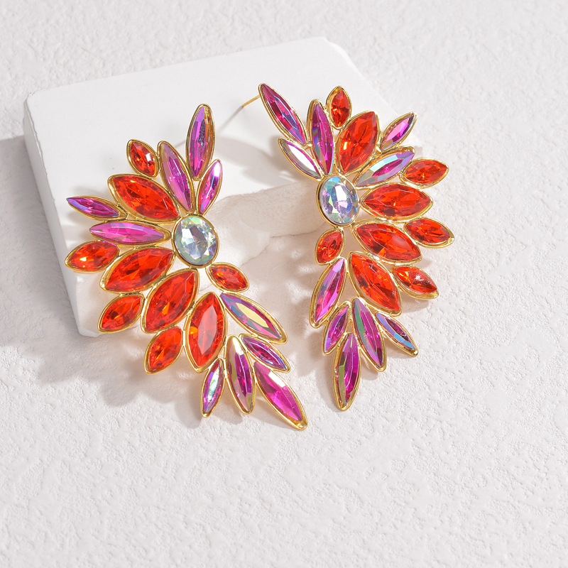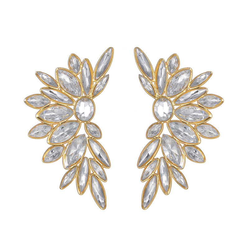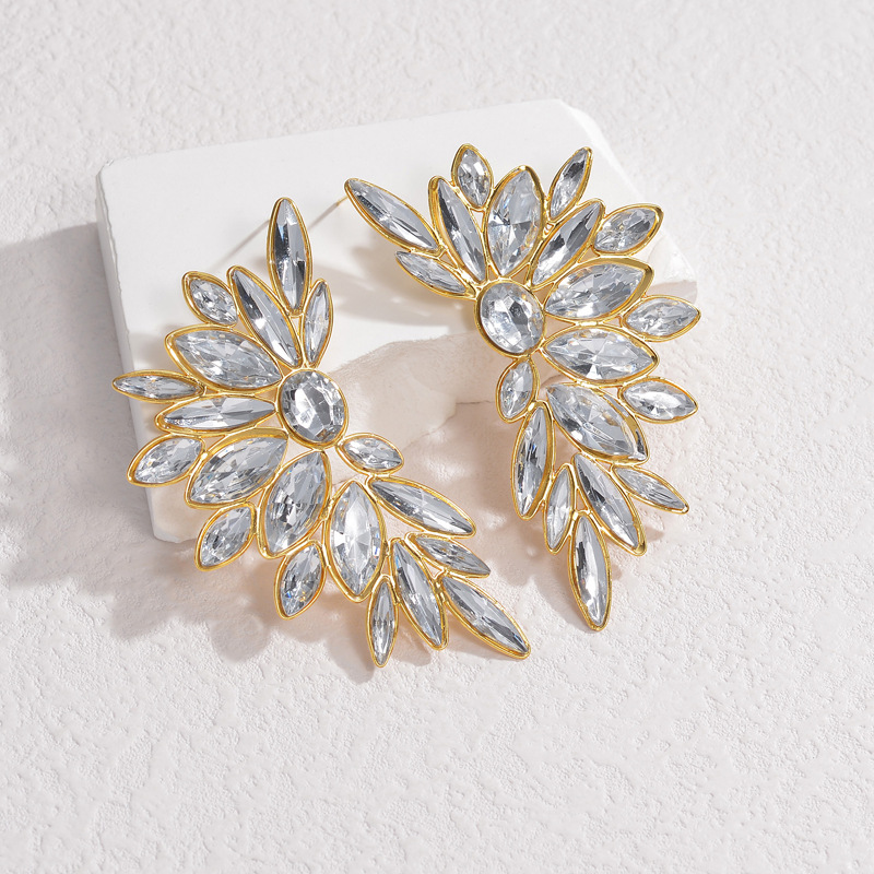 clou d'oreille en acier inoxydable avec stras, Acier inoxydable 304, feuille, Placage, bijoux de mode & pour femme & avec strass, doré, Vendu par paire