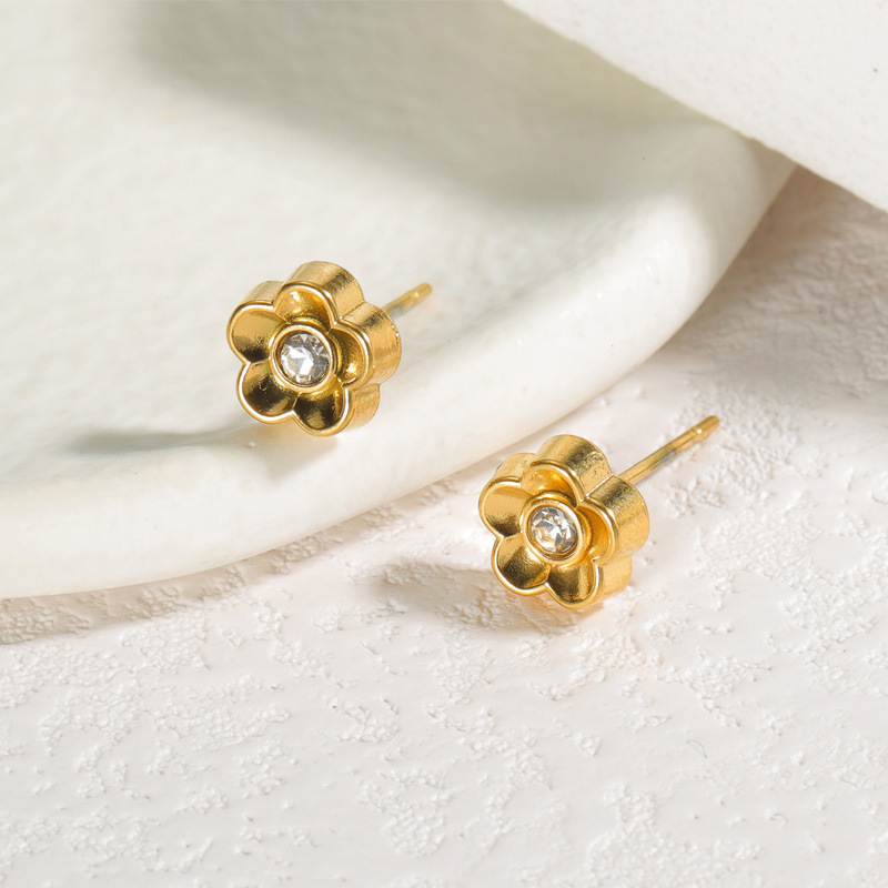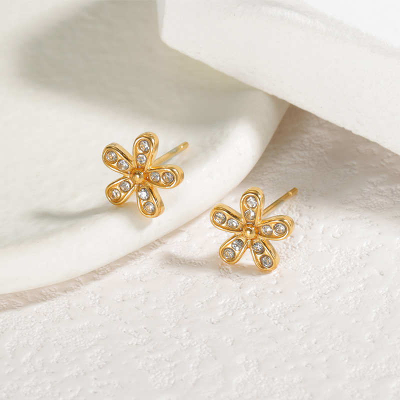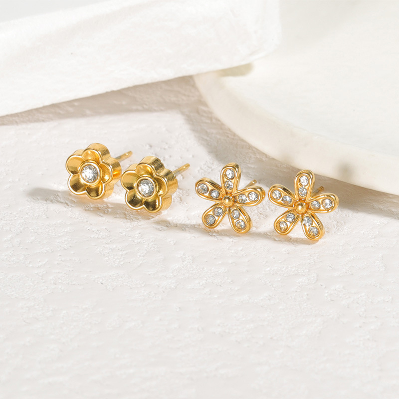 clou d'oreille en acier inoxydable avec stras, Acier inoxydable 304, fleur, Placage, styles différents pour le choix & pour femme & avec strass, doré, Vendu par paire